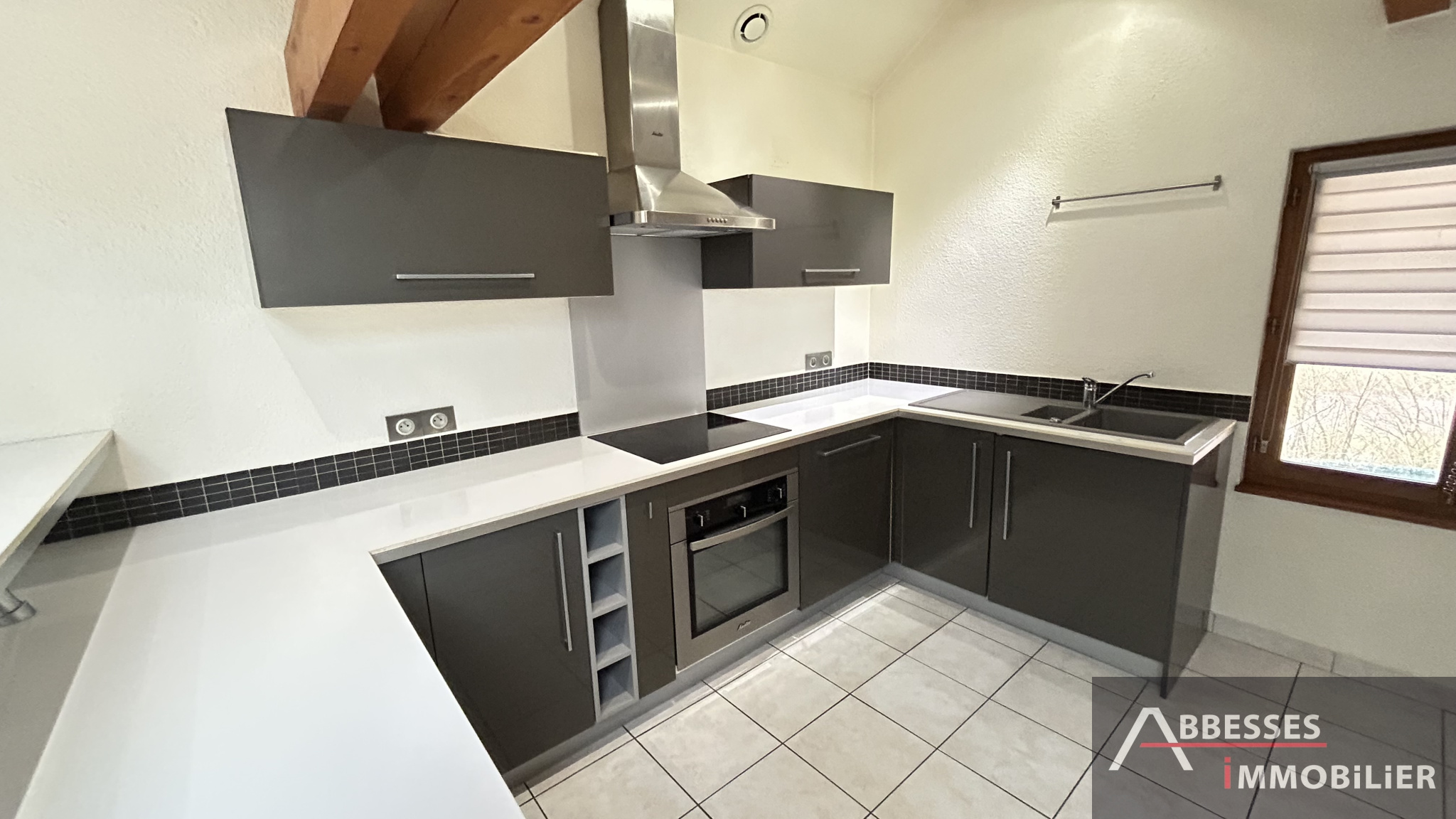 EN EXCLUSIVITÉ - SAINT-NABORD - Grand appartement F4 "MEUBLÉ" en duplex avec entrée indépendante comprenant : Entrée / dégagement au rez-de-chaussée. A l'étage : dégagement / mezzanine, cuisine équipée-intégrée (four + plaque de cuisson + hotte + lave vaisselle + réfrigérateur), petit cellier, grand salon-séjour (6 chaises neuves + table neuve), 2 chambres (dont une avec armoire + literie neuve), salle de douche, wc indépendant. Grande cave voutée bétonnée. Parking. Chauffage poêle à pellet + radiateur électrique.