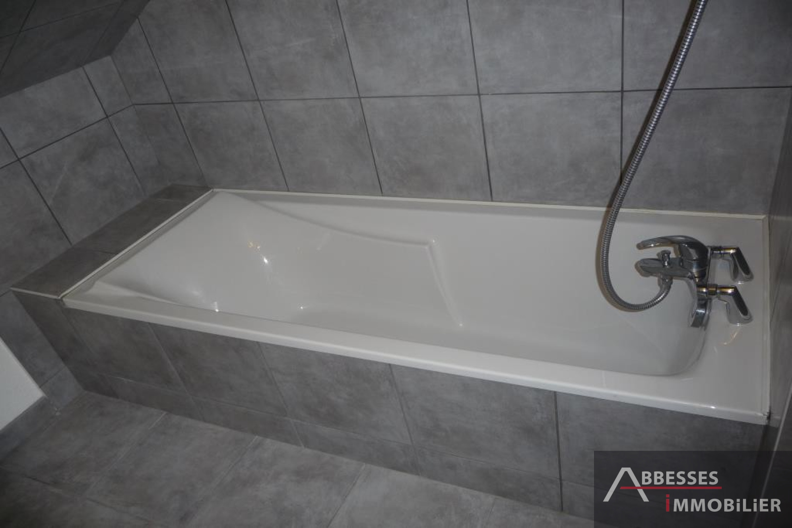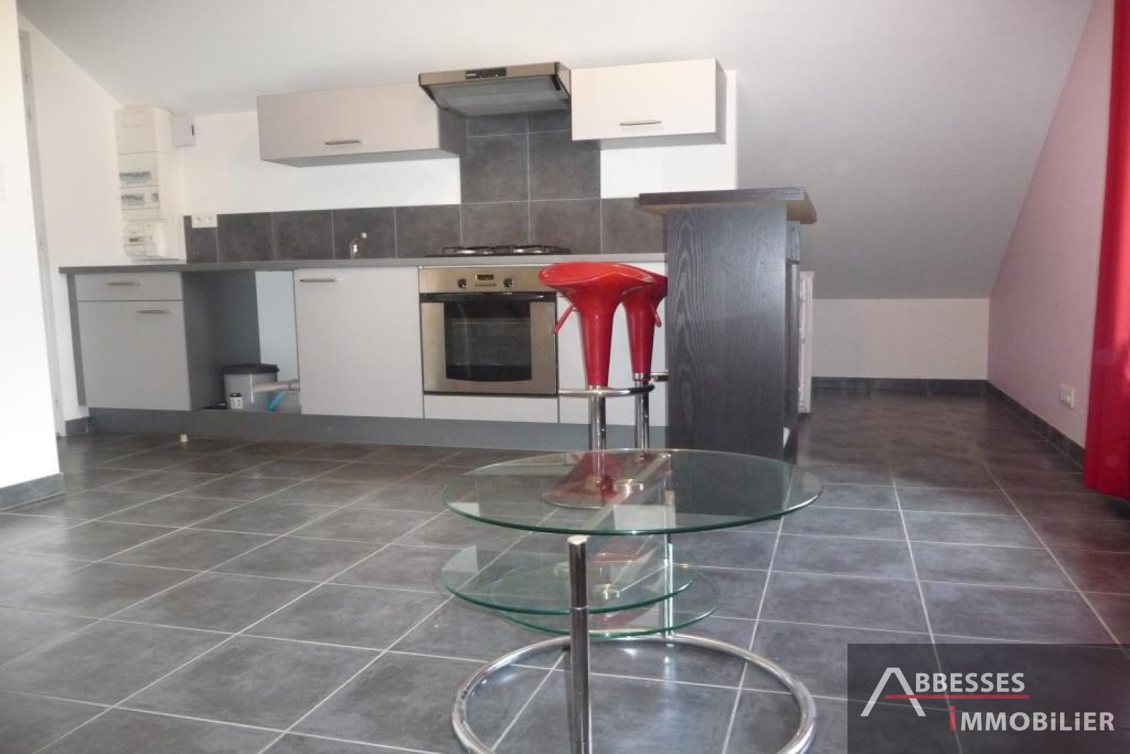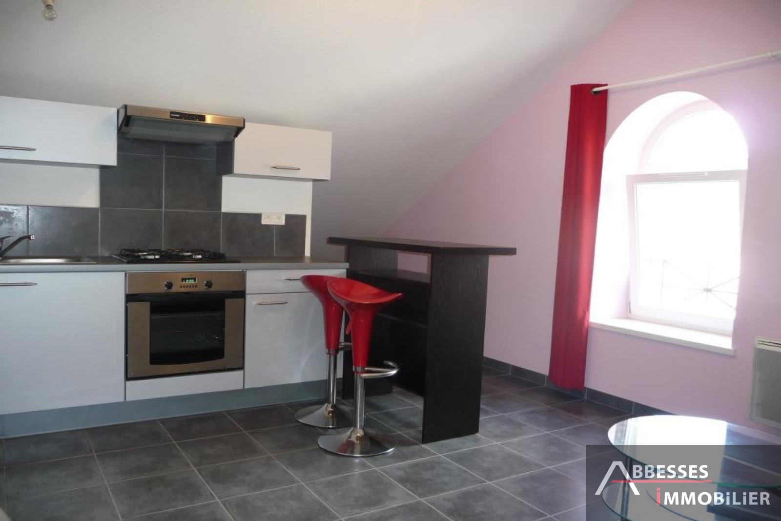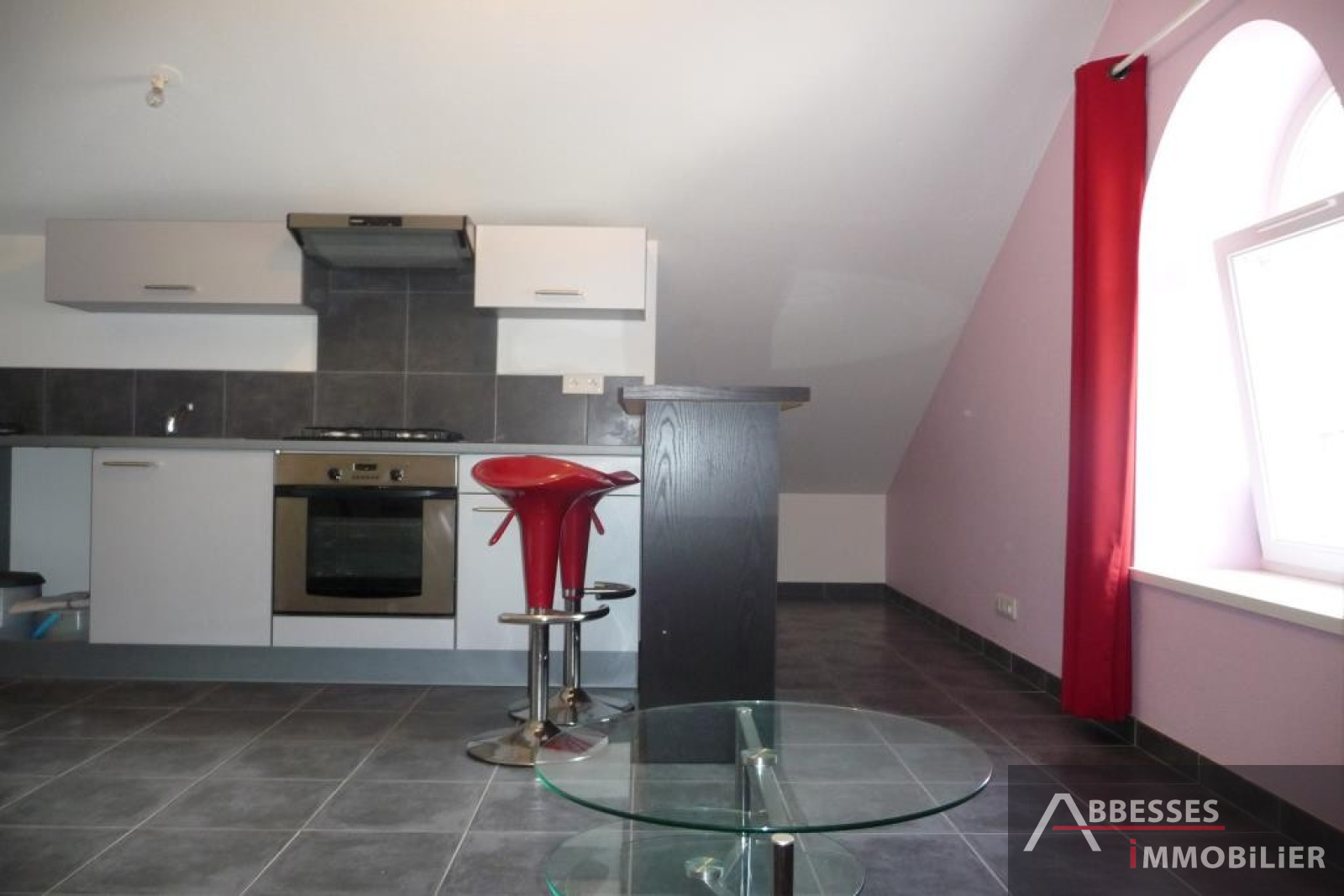 ELOYES – Rue des Donjons : Studio situé au 2ème et dernier étage comprenant : entrée, cuisine équipée (plaque de cuisson, hotte, four) ouverte sur pièce principale / chambre, salle de bain (baignoire), wc séparé par une cloison. Chauffage individuel électrique.