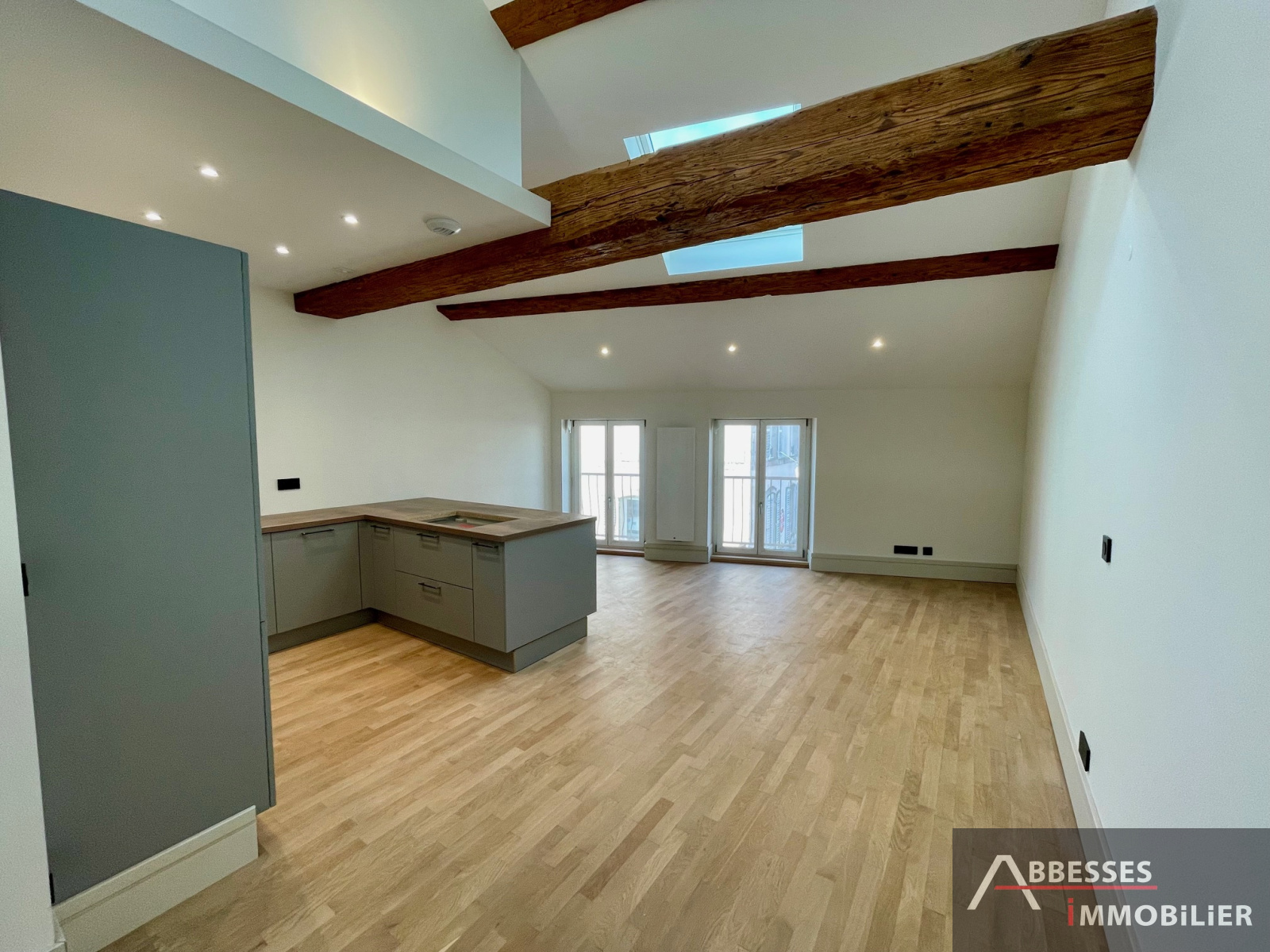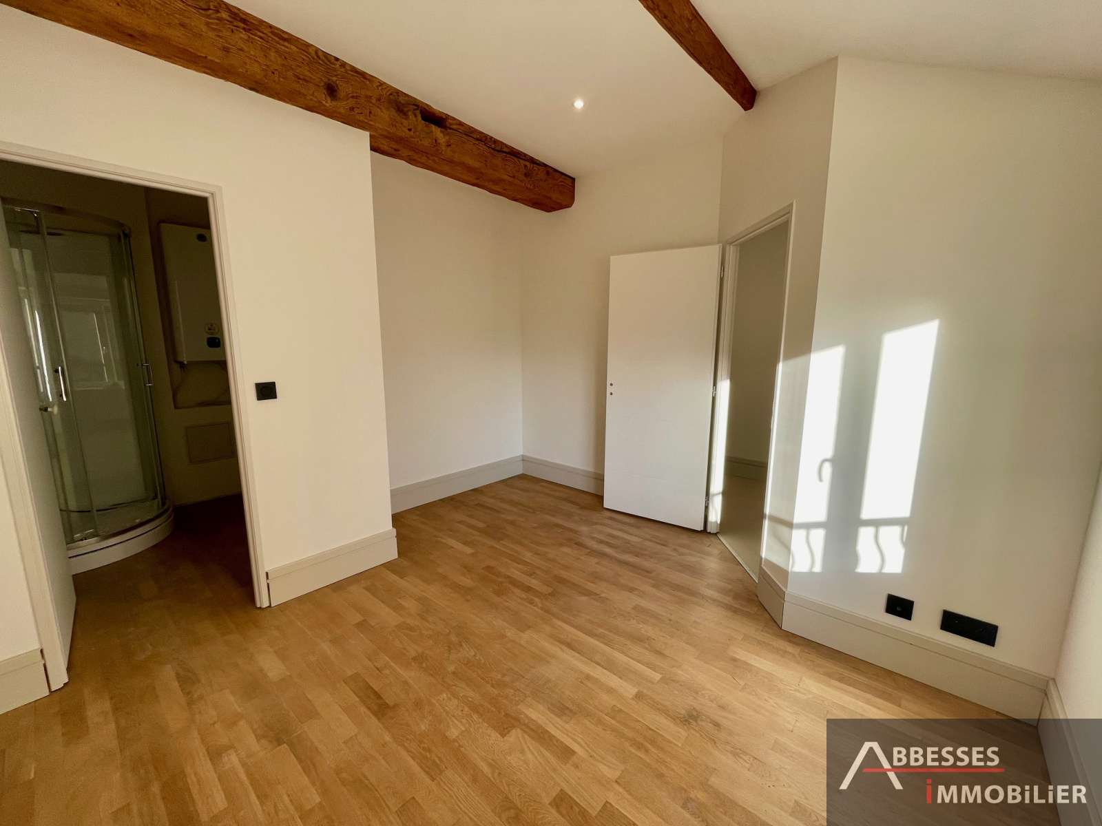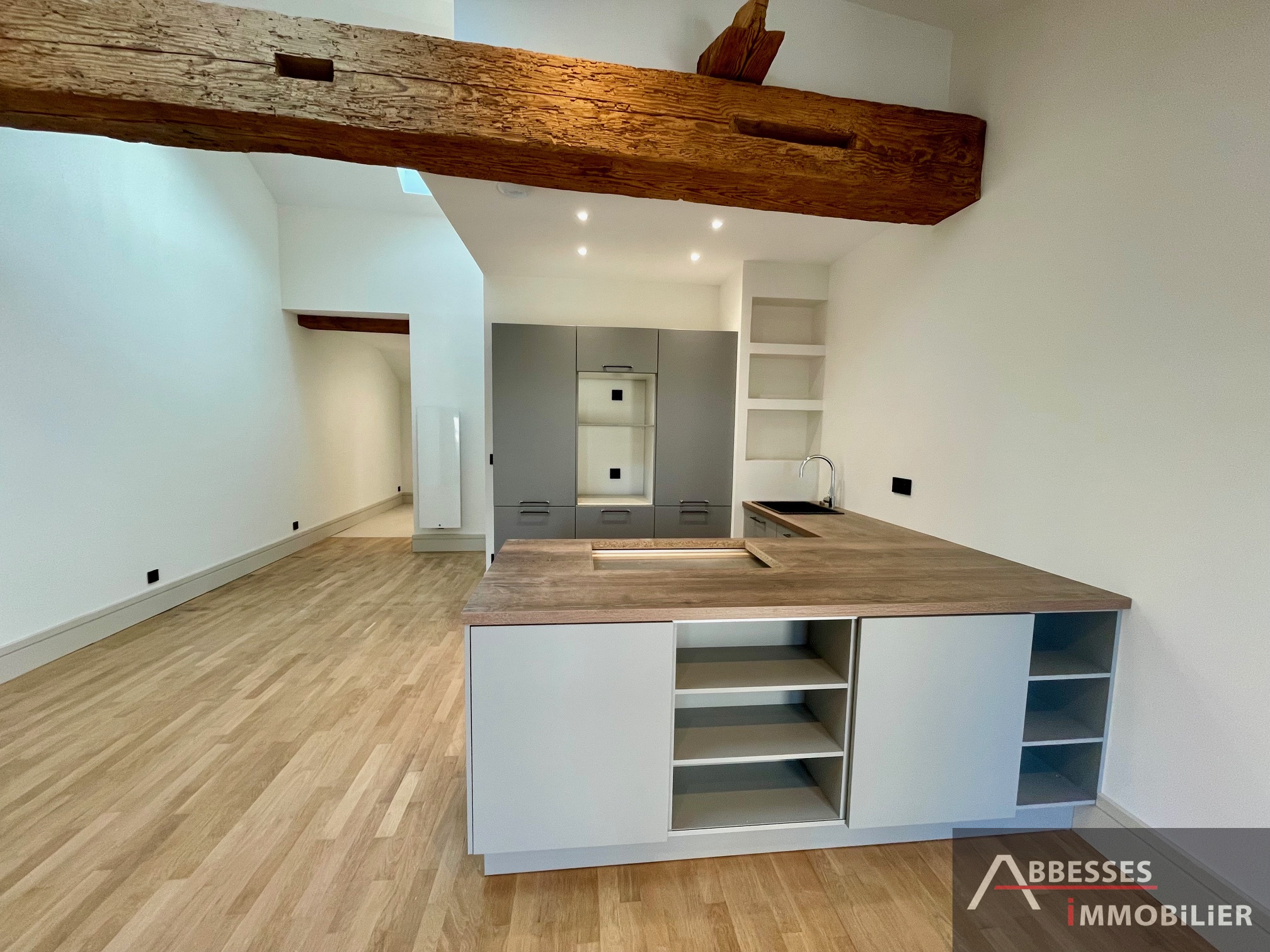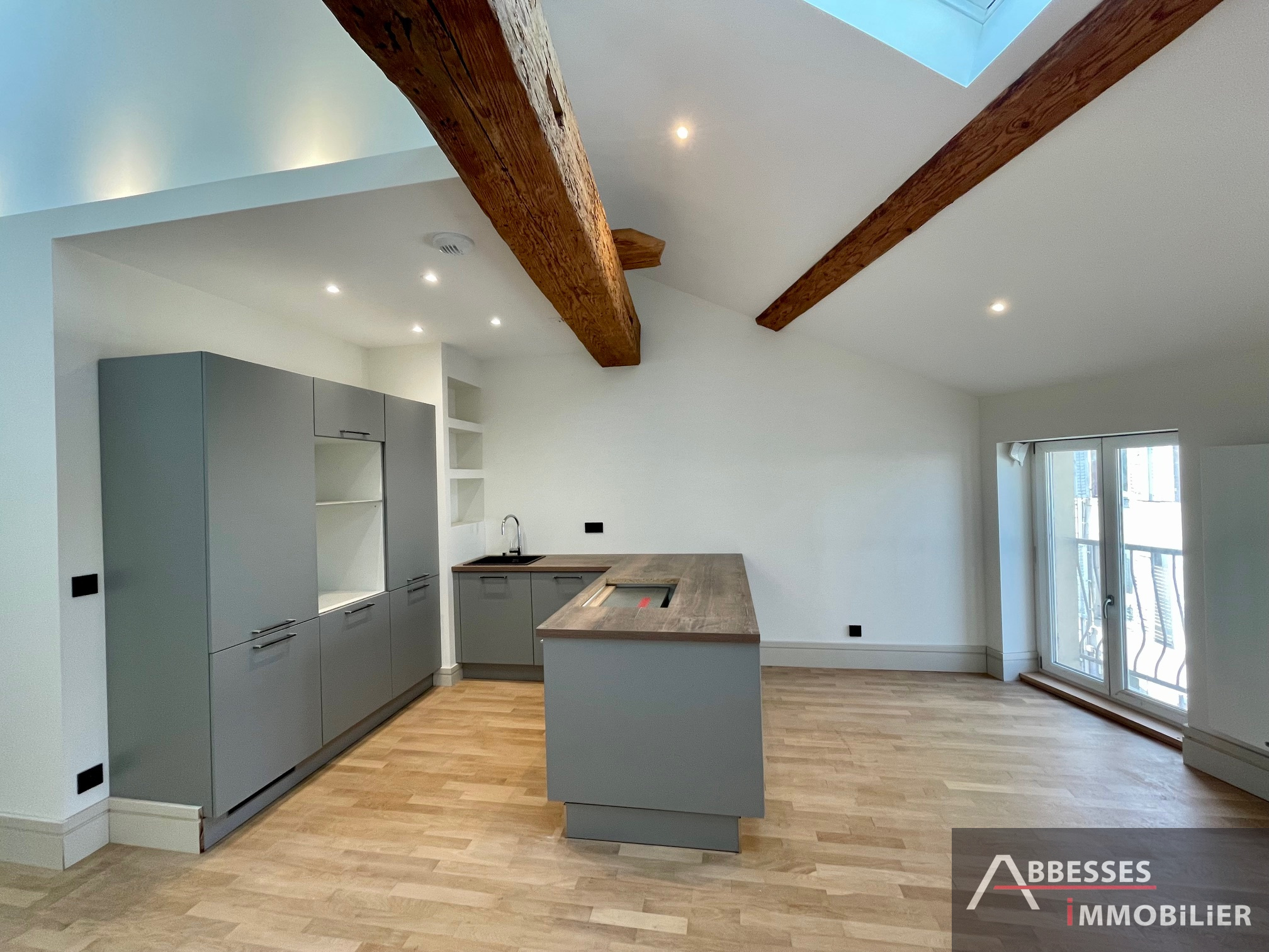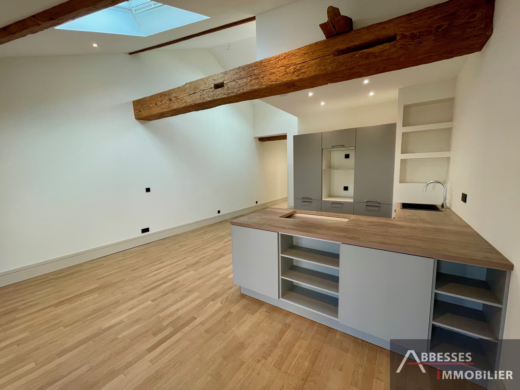 Composé : entrée dégagement, cuisine aménagée avec îlot central (provenance : "Différence cuisine") ouverte sur le séjour avec poutres apparentes, une chambre avec salle de douche. WC séparé.