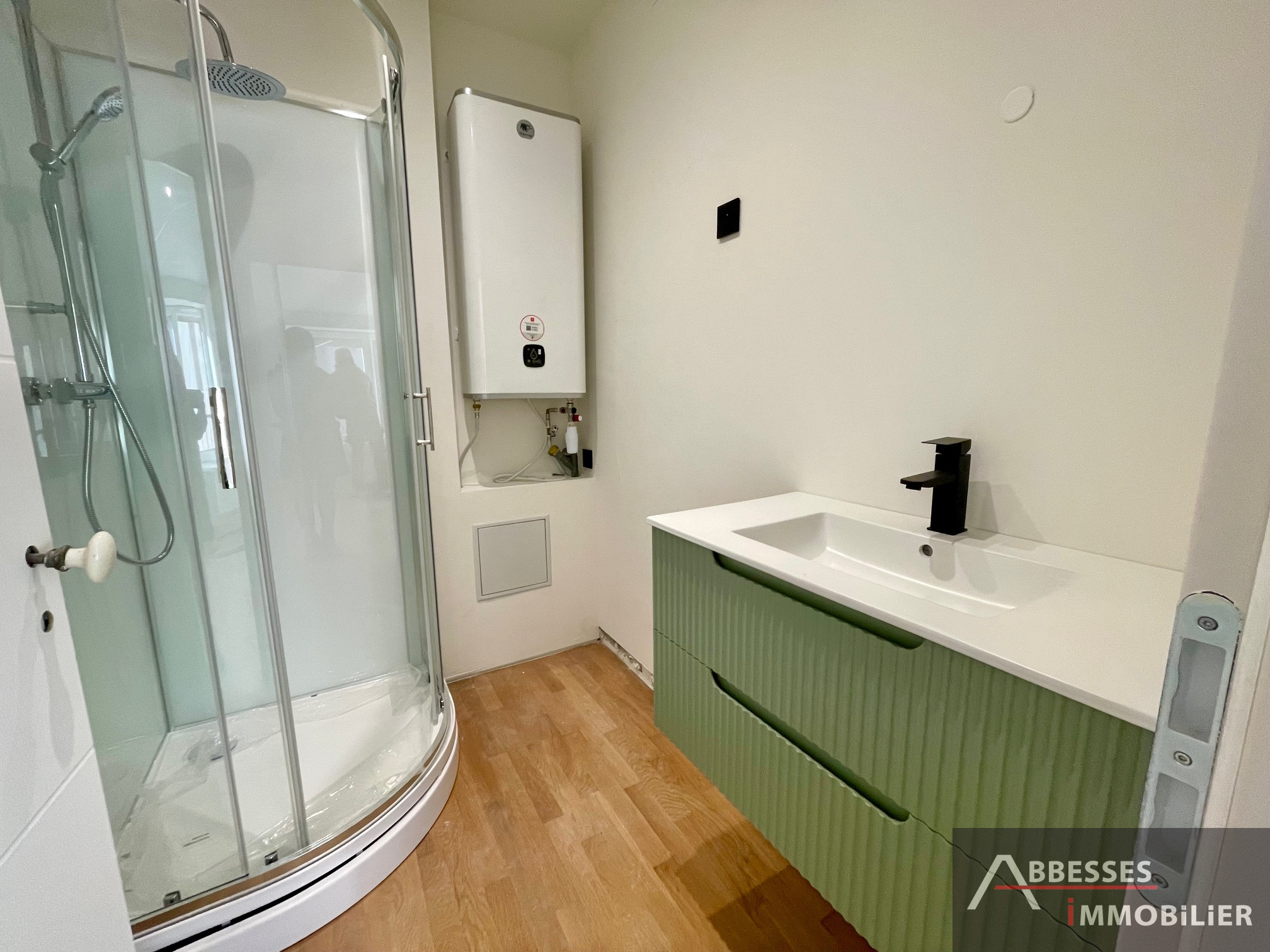 Chauffage individuel électrique neuf par convecteurs haut de gamme dernière génération à inertie. Chauffe-eau extra-plat basse consommation. Parquets en chêne massif.