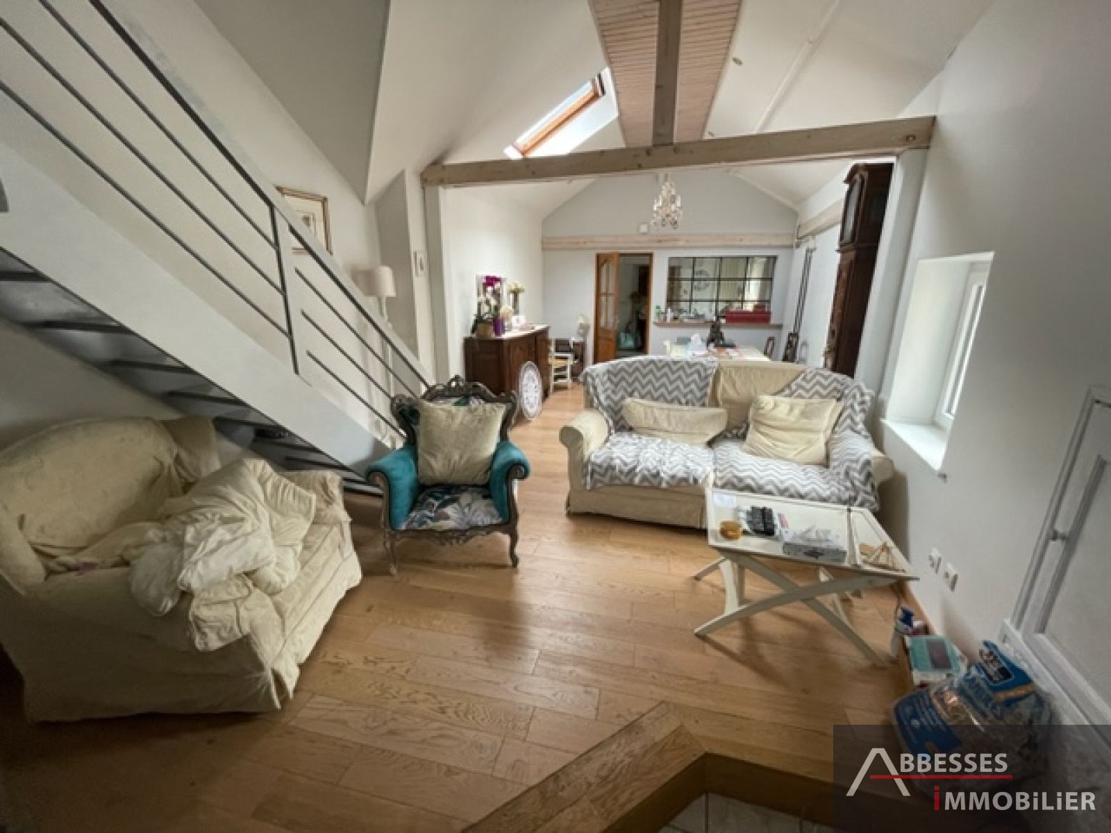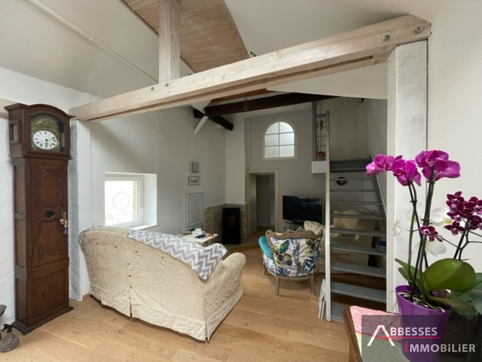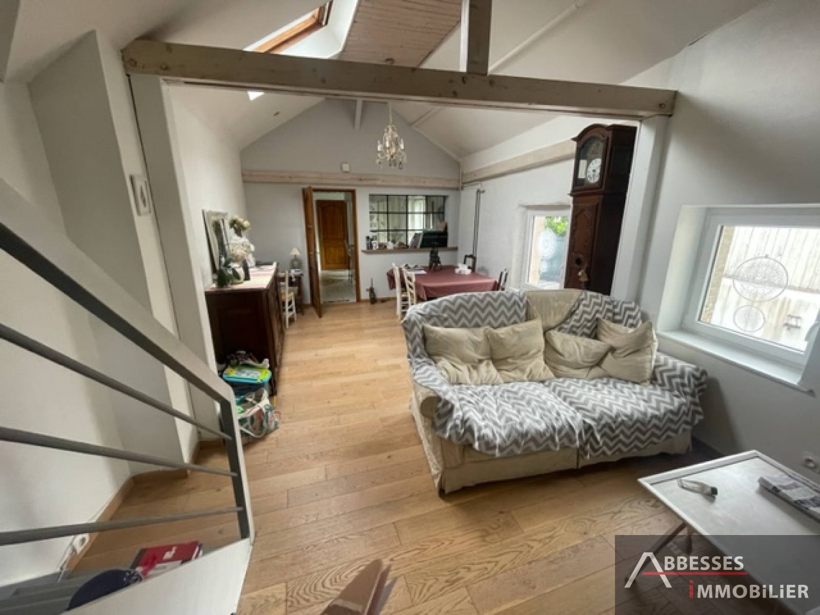 A l'étage : mezzanine/bureau , 3ème chambre.