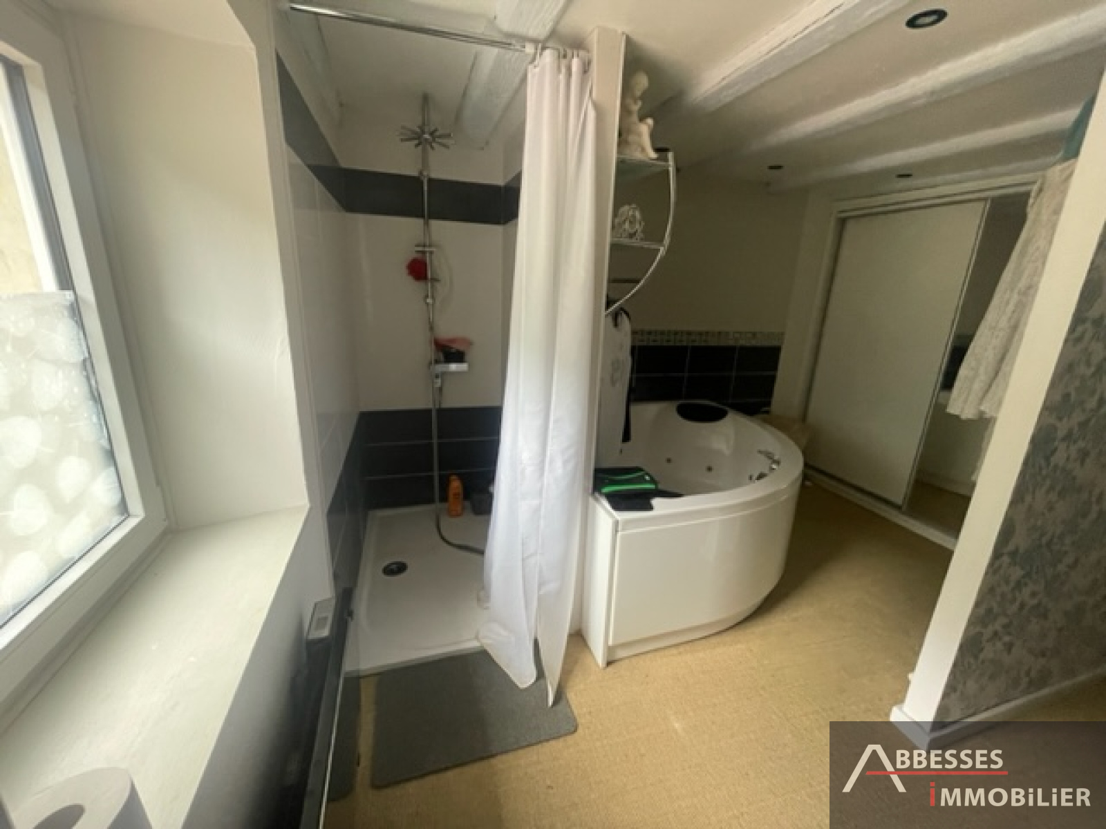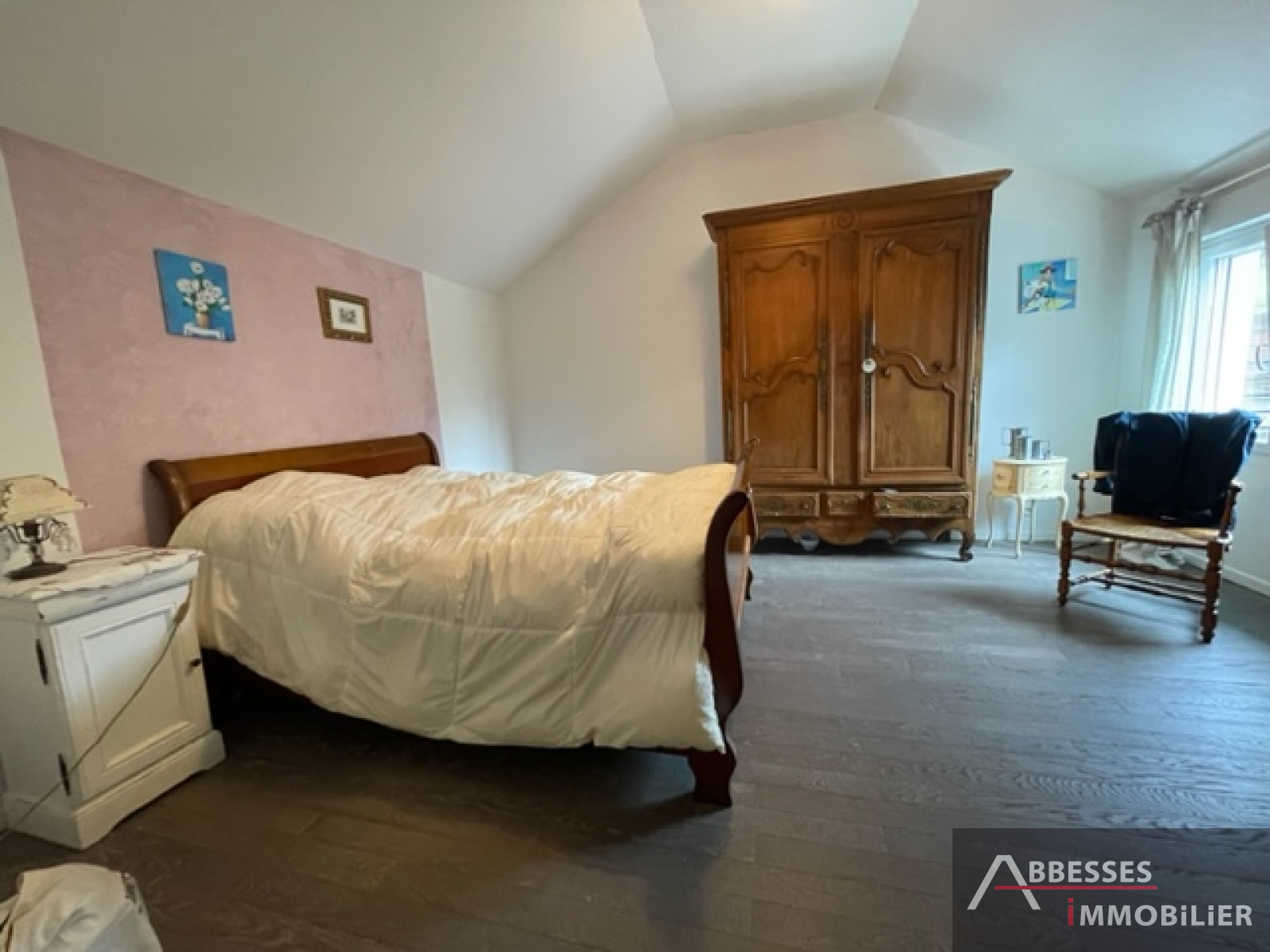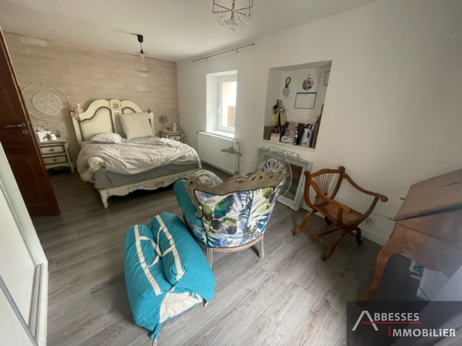 A l'étage : mezzanine/bureau , 3ème chambre.