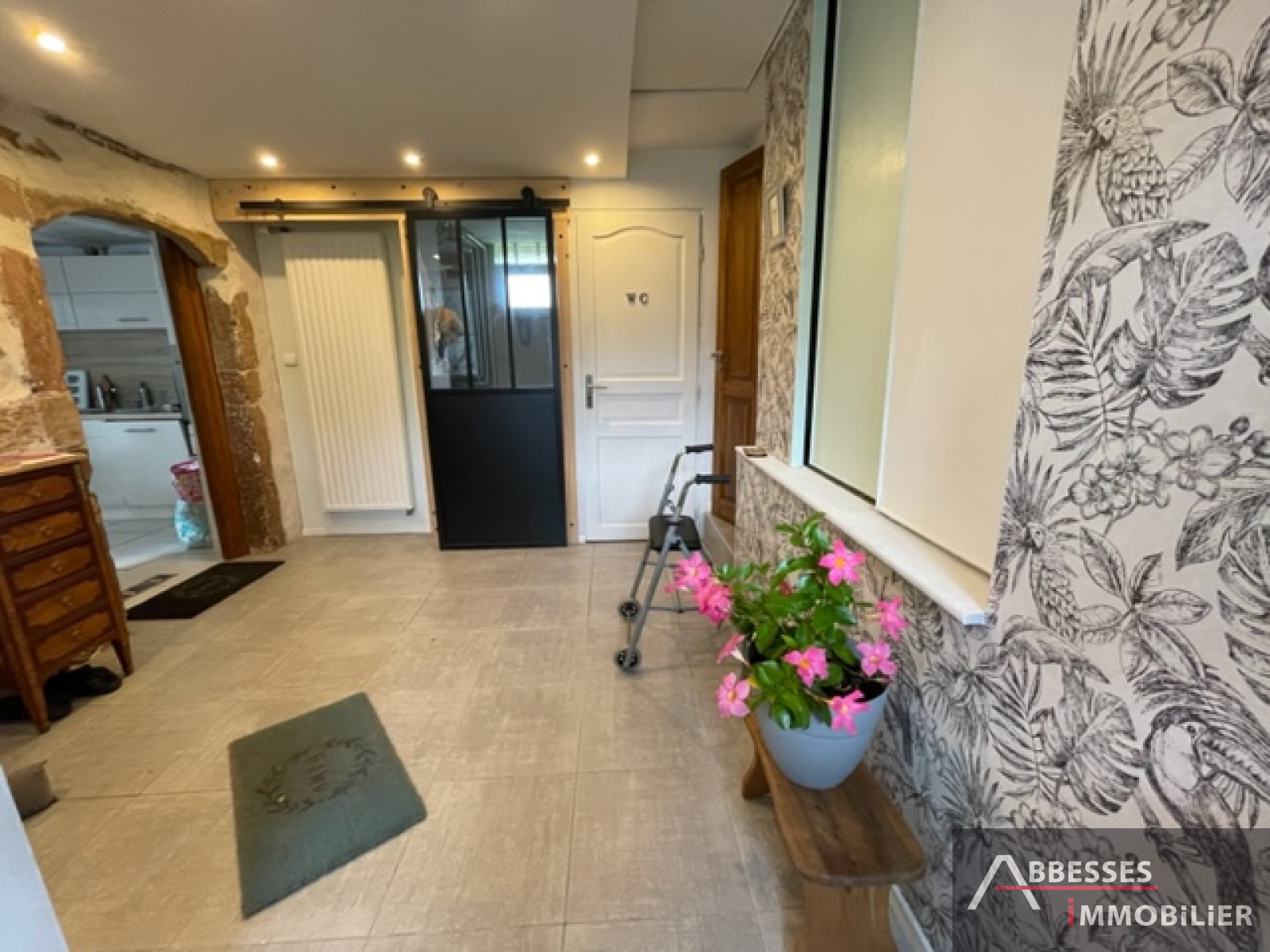 Vaste entrée dégagement, cuisine équipée-intégrée accès terrasse, salon-séjour avec poêle à pellets, 2 chambres, wc, salle de douche (douche italienne, meuble 2 vasques).cellier, buanderie,