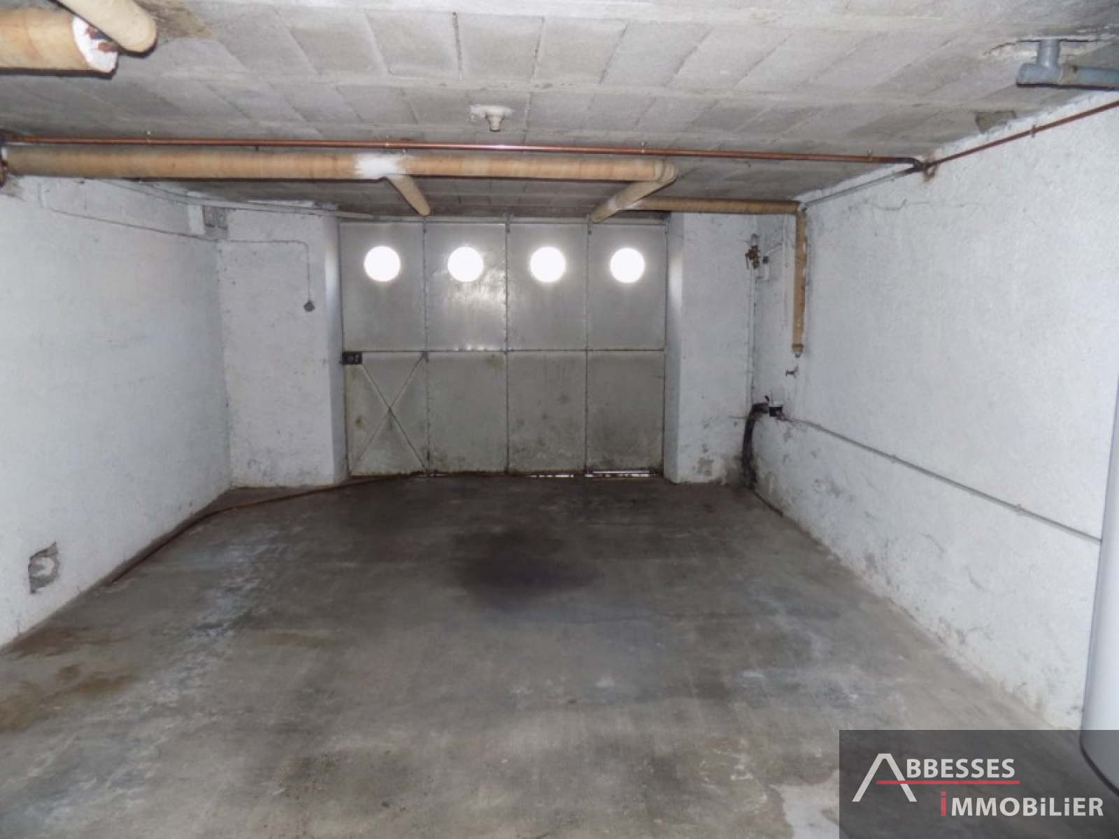 Au sous sol : buanderie, cave, garage un véhicule avec porte motorisée sectionnelle électrique. Chaufferie : chaudière au gaz.