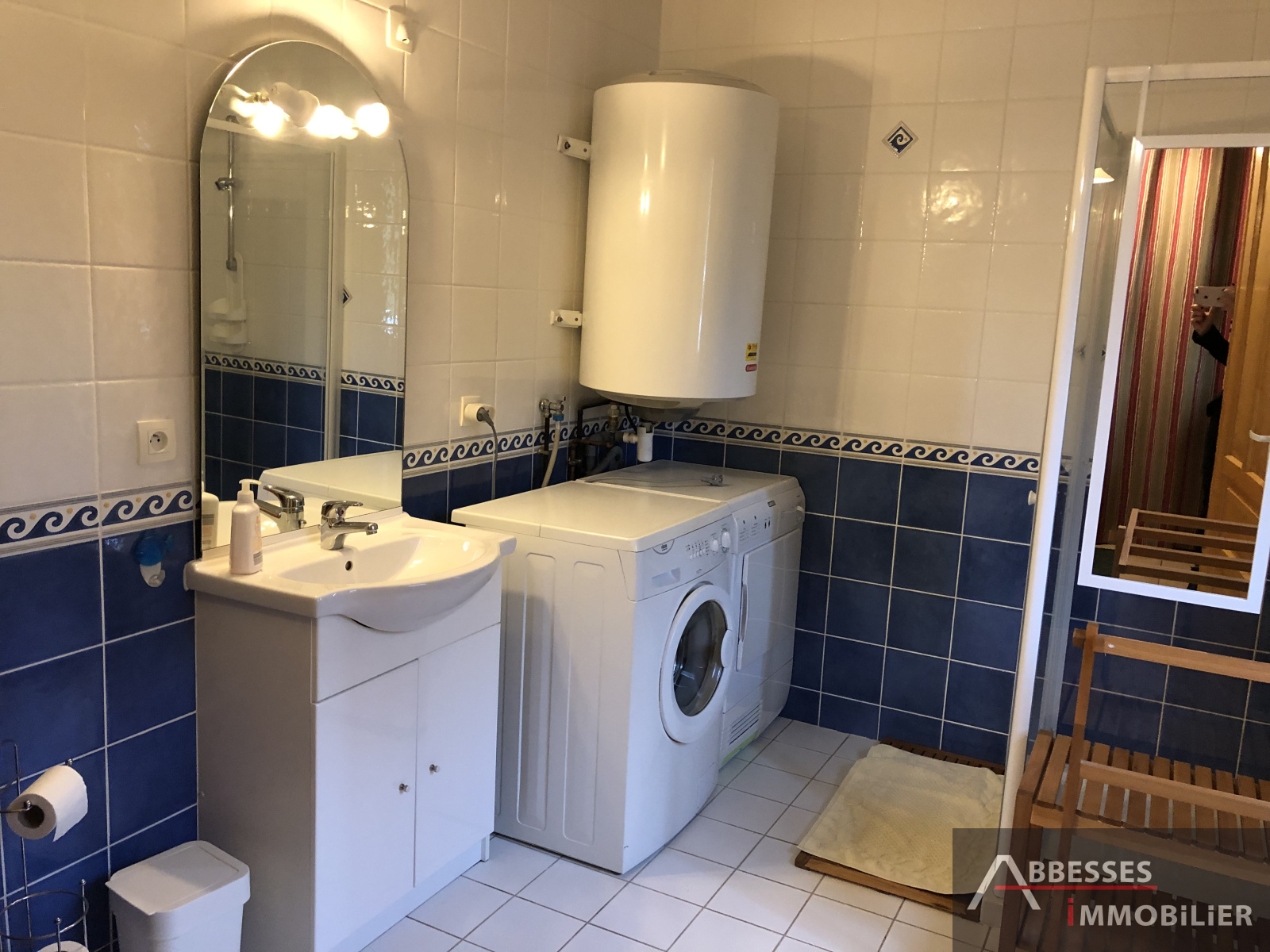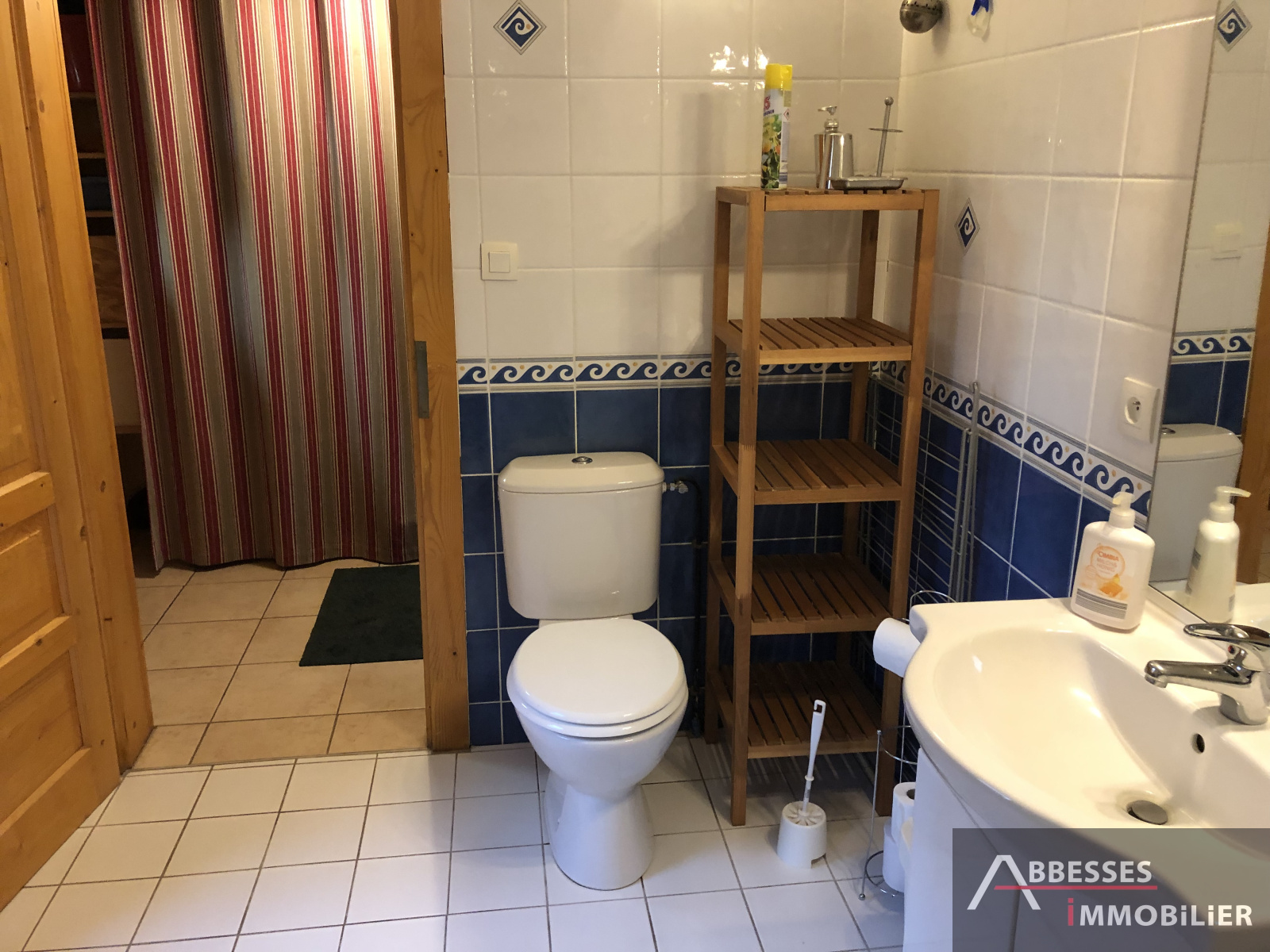 Entrée, cuisine équipée ouverte sur salon-séjour avec porte fenêtre donnant sur terrasse d'env 30m² plein sud. Salle de douche avec wc. Etage : mezzanine, 2 chambres avec balcon. Débarras dans la mansarde.