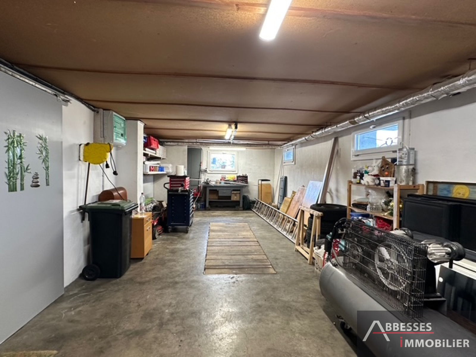 Sous sol : chaufferie, atelier, garage 2 véhicules en enfilade