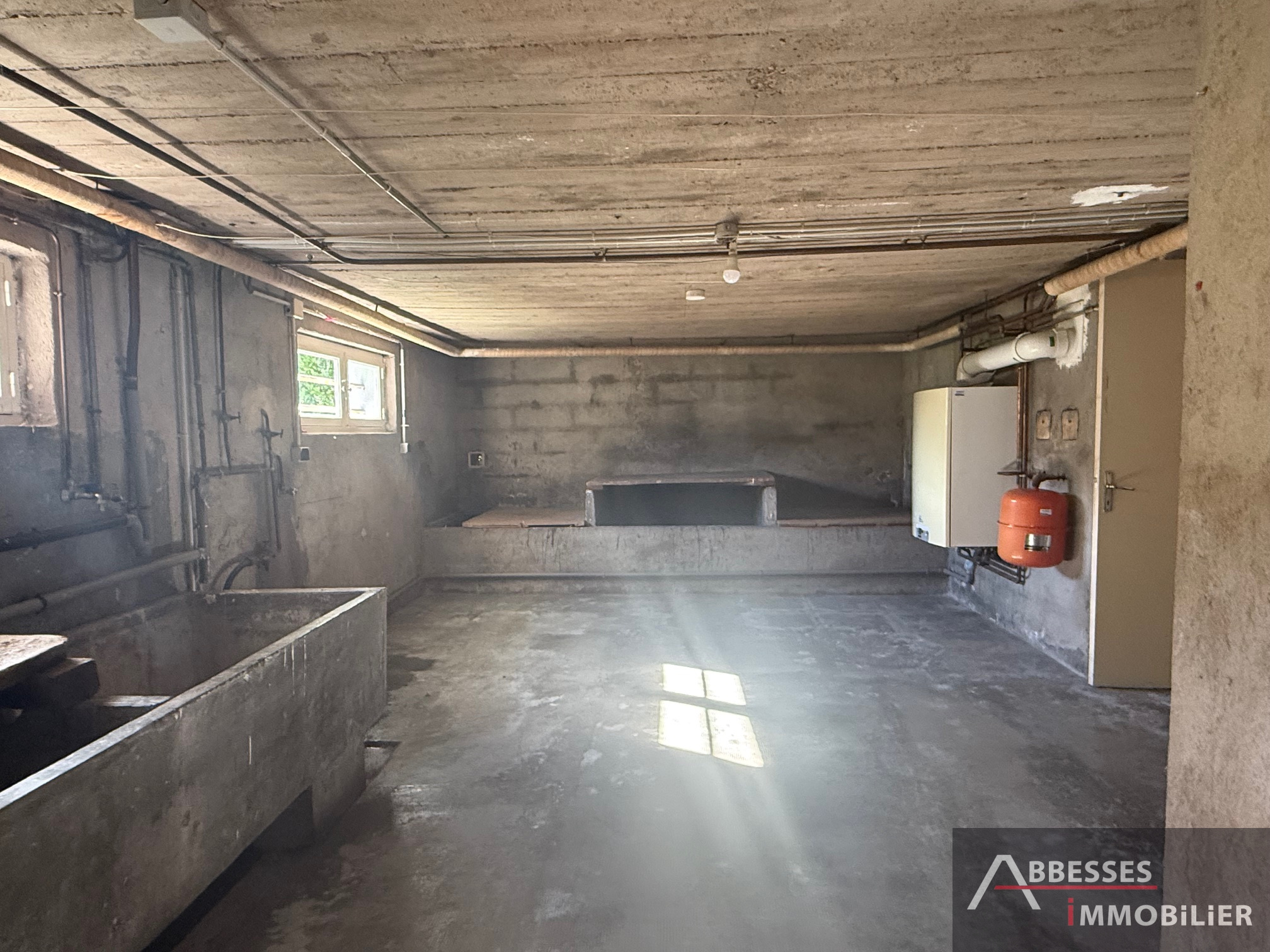 Sous-sol : buanderie (chaudière au gaz de ville très récente), cave en terre battue, petit garage. Terrain attenant d'environ 435 m².
