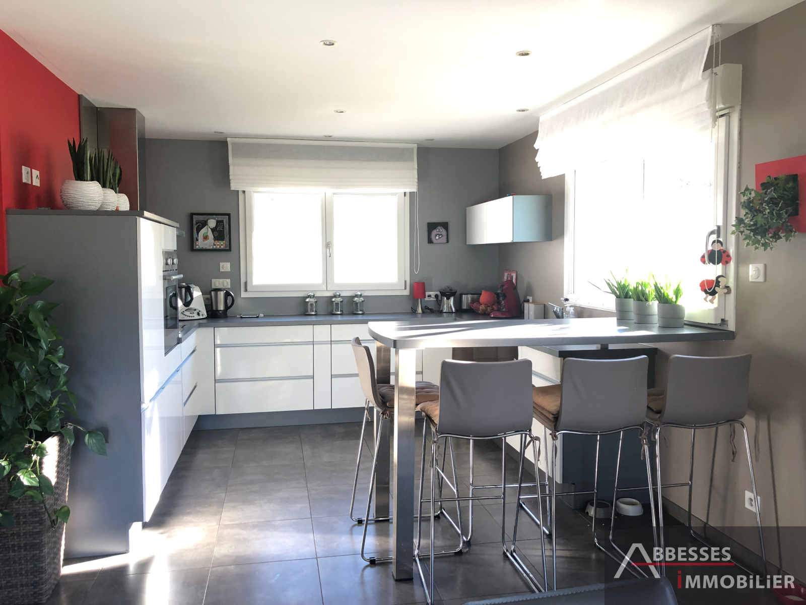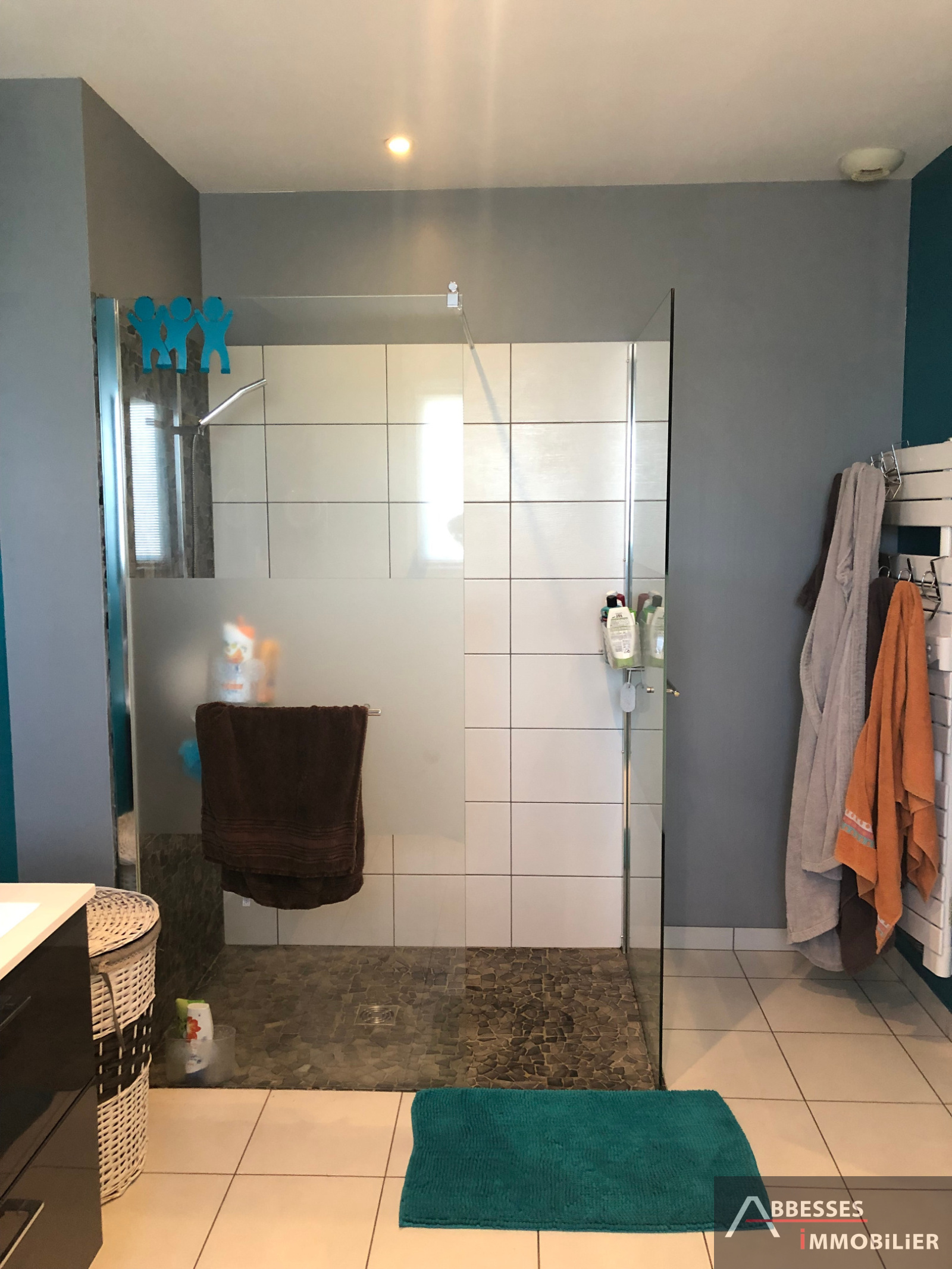 Étage : couloir / mezzanine desservant 4 chambres avec placards, salle de bains (baignoire, douche italienne, meuble double vasques). Wc indépendant. Pièce débarras / cellier.