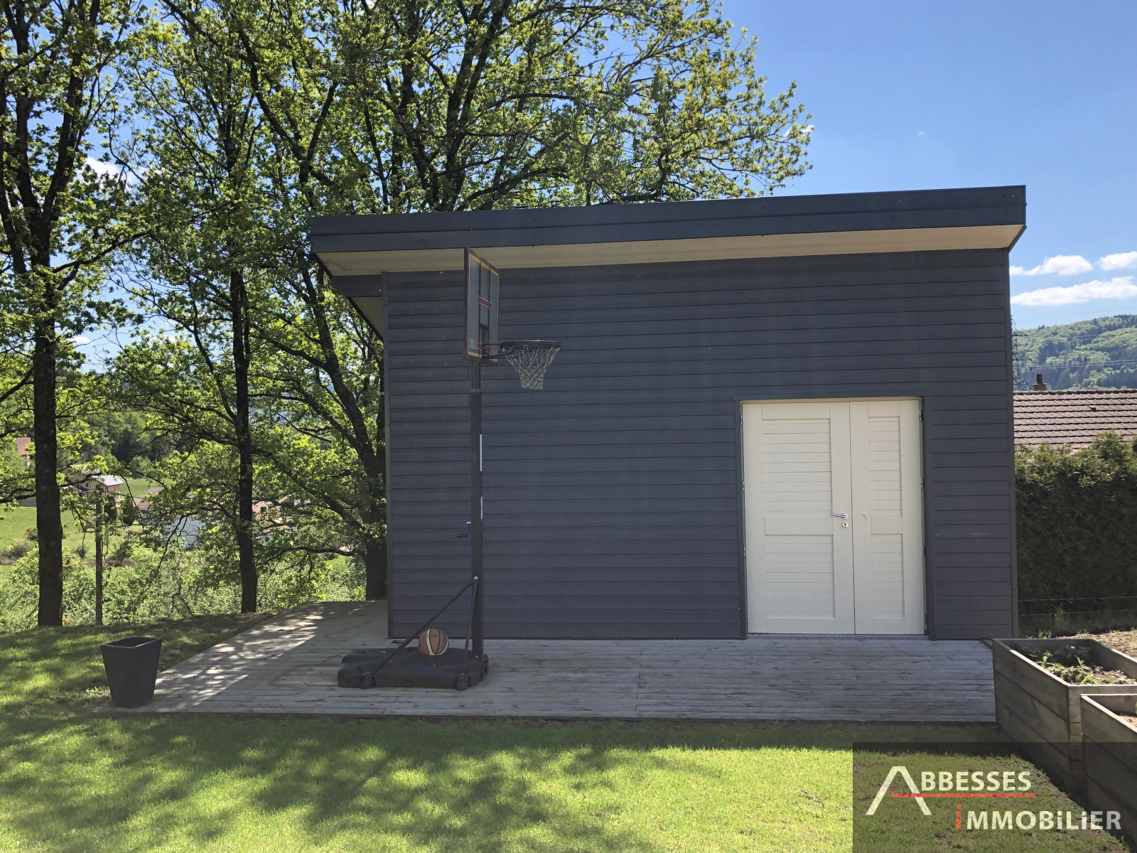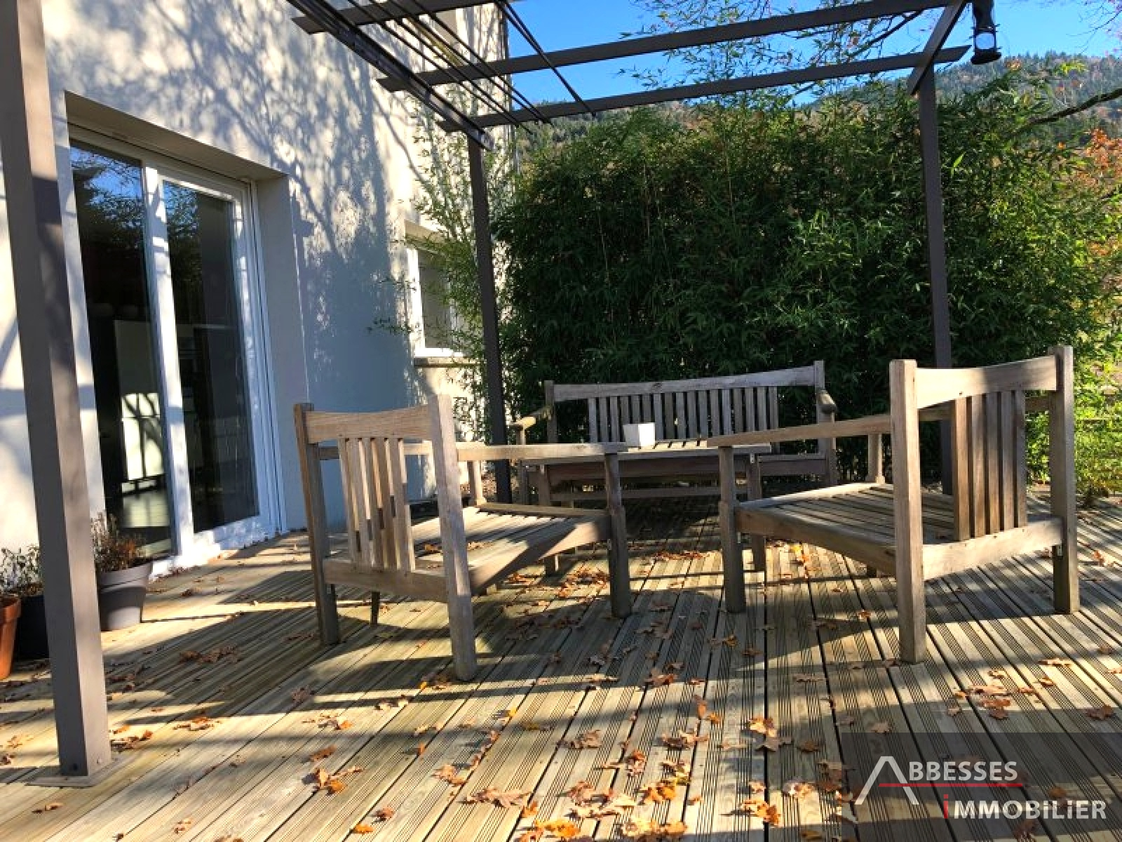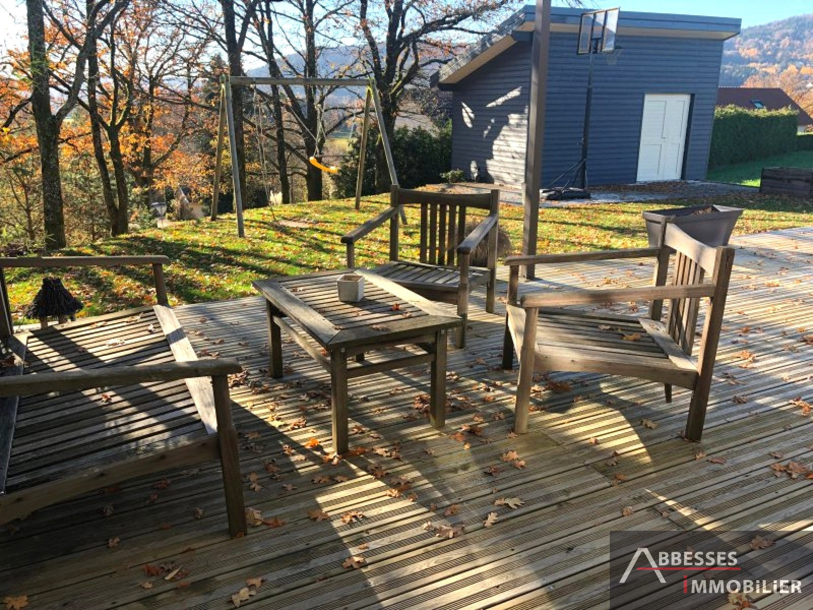 Terrasse. Terrain attenant aménagé et paysagé d'env 1000 m2. Abri de jardin. Exposition sud.