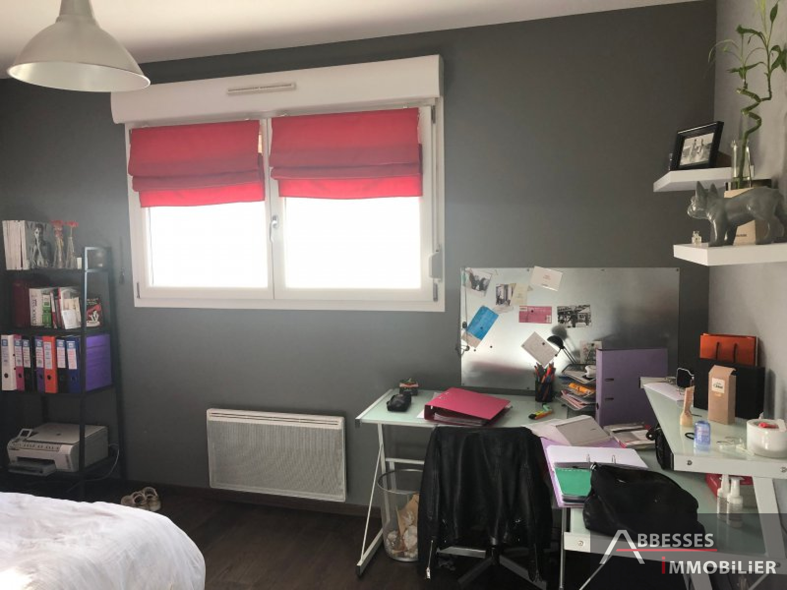 Wc indépendant. Buanderie (placard) accès garage. Garage avec porte motorisée + partie rangements (bois).