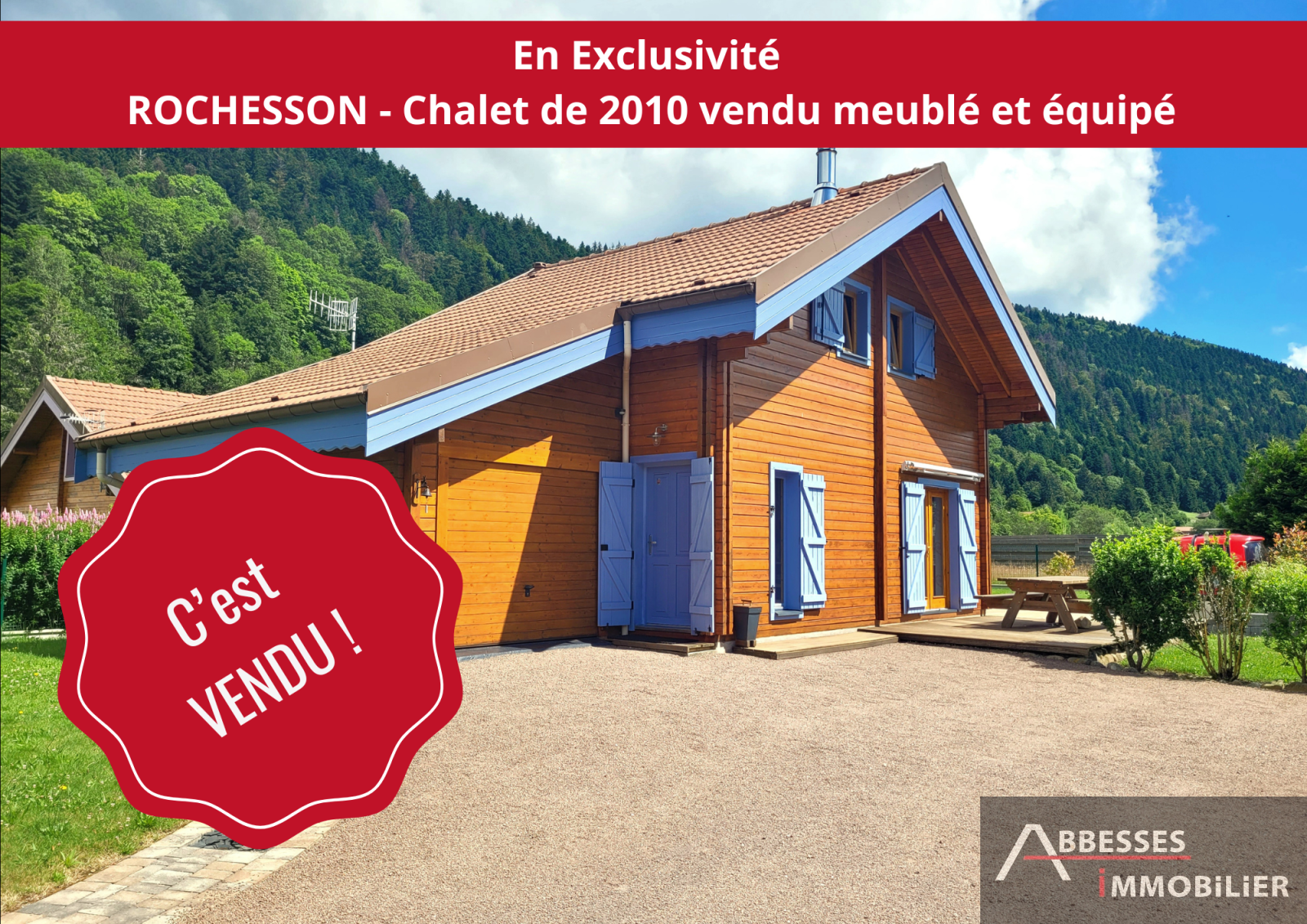 EN EXCLUSIVITÉ : ROCHESSON chalet de 2010 en parfait état vendu entièrement meublé et équipé