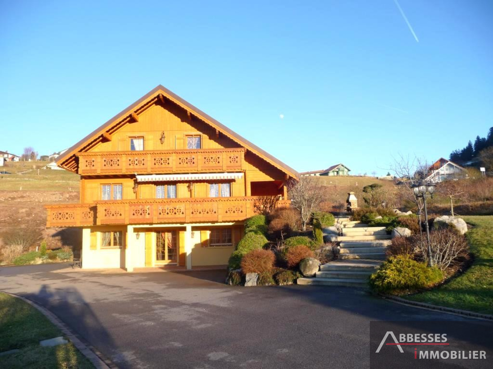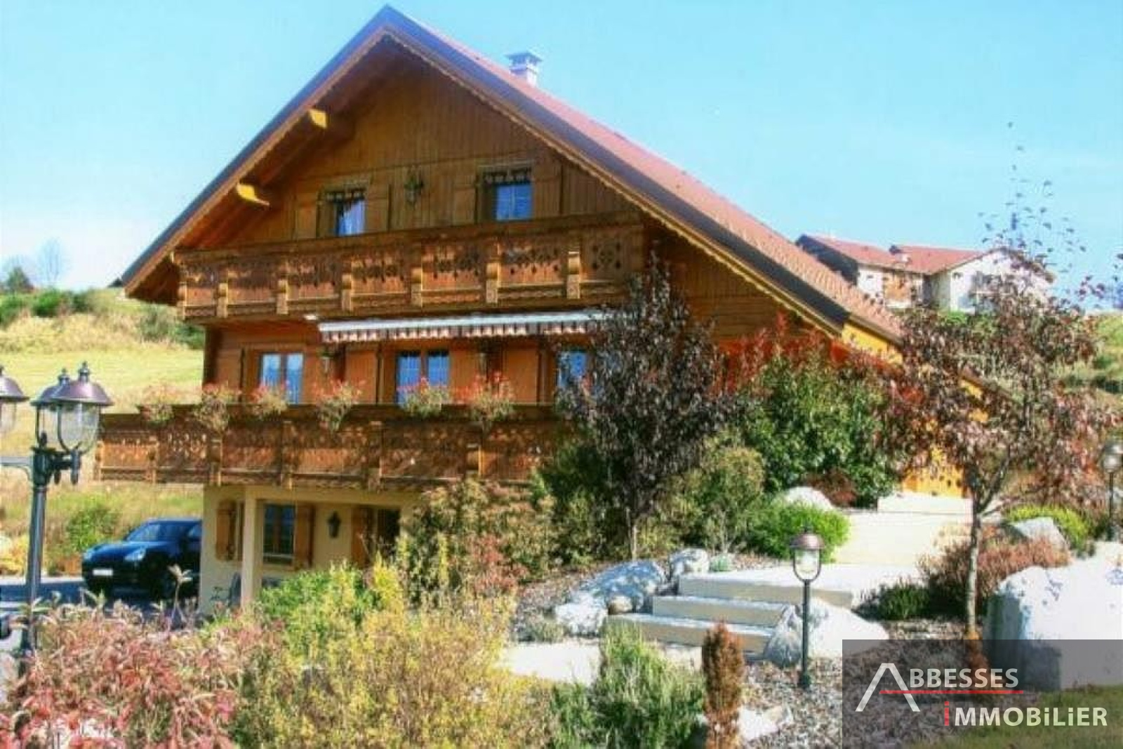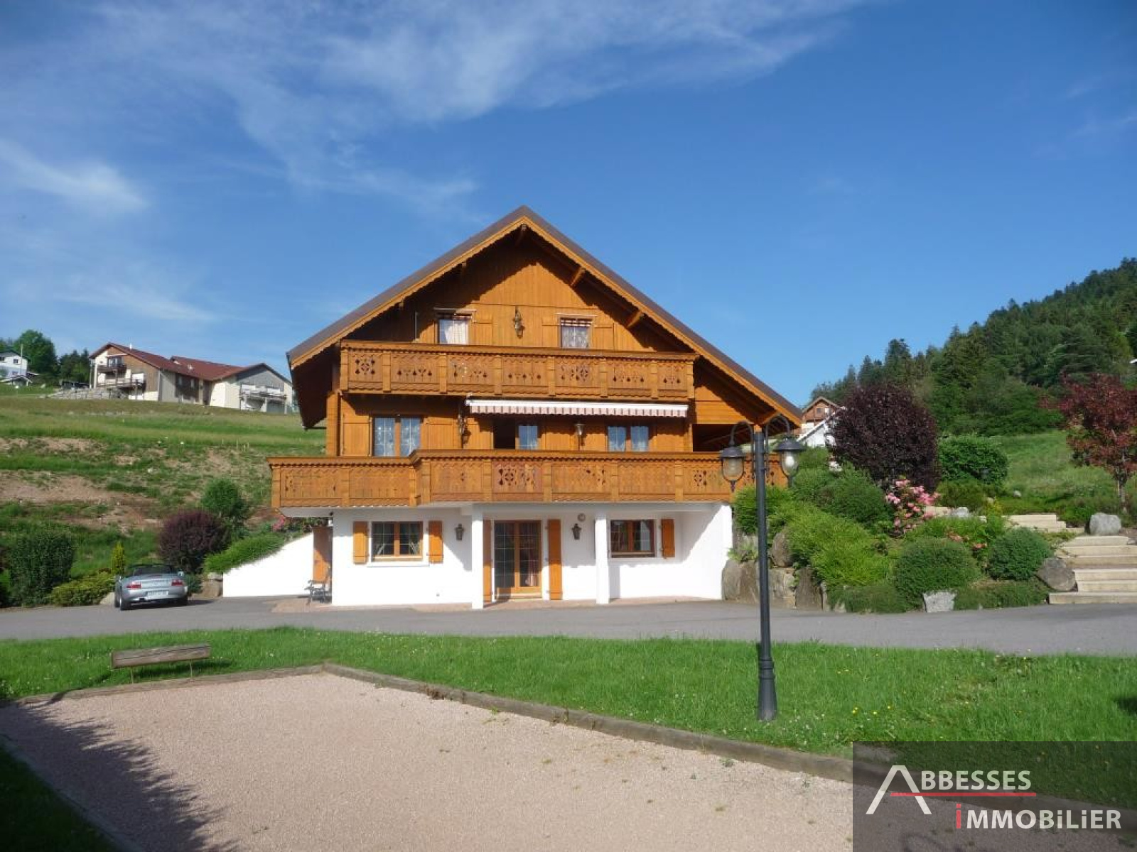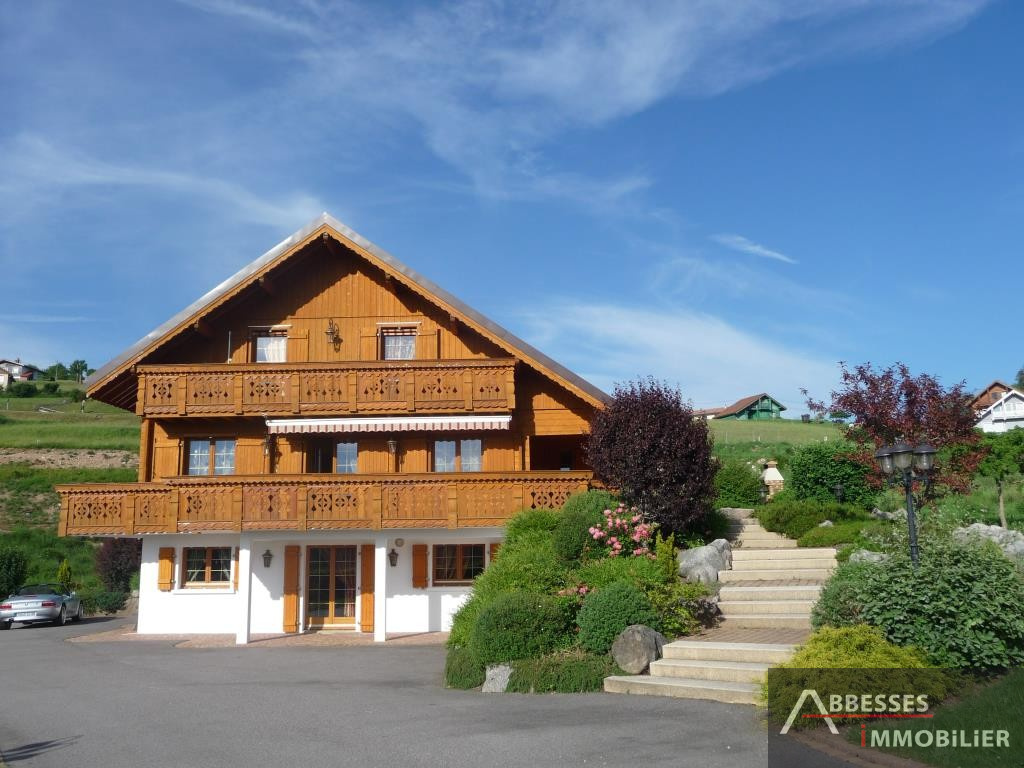 EN EXCLUSIVITE - GERARDMER : SUPERBE CHALET situé aux pieds des pistes, vue lac, ... 234 m² hab env. Cuisine intégrée, salon-séjour (poele faience) + terrasse, 4 chambres. Dressing. Mezzanine, balcon. 3 SDB, SAUNA. Salon détente. Garage. Terrain de pétanque. Terrain paysagé 3 000 m² env.