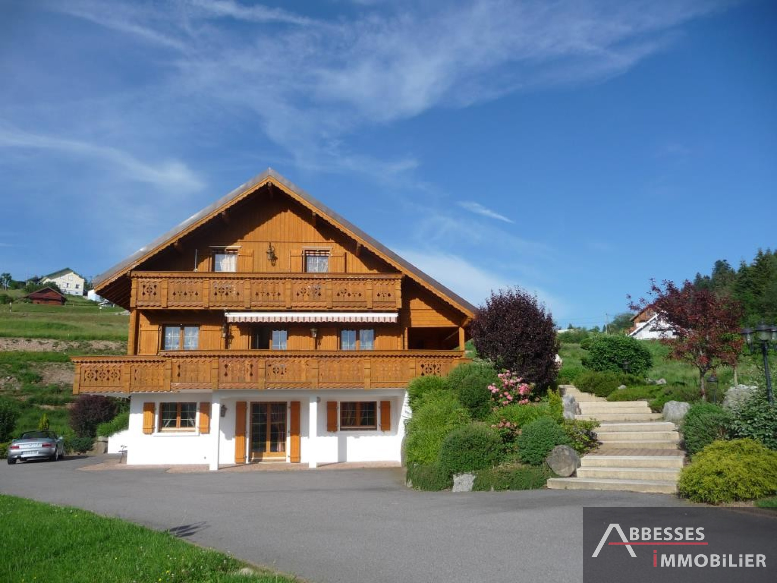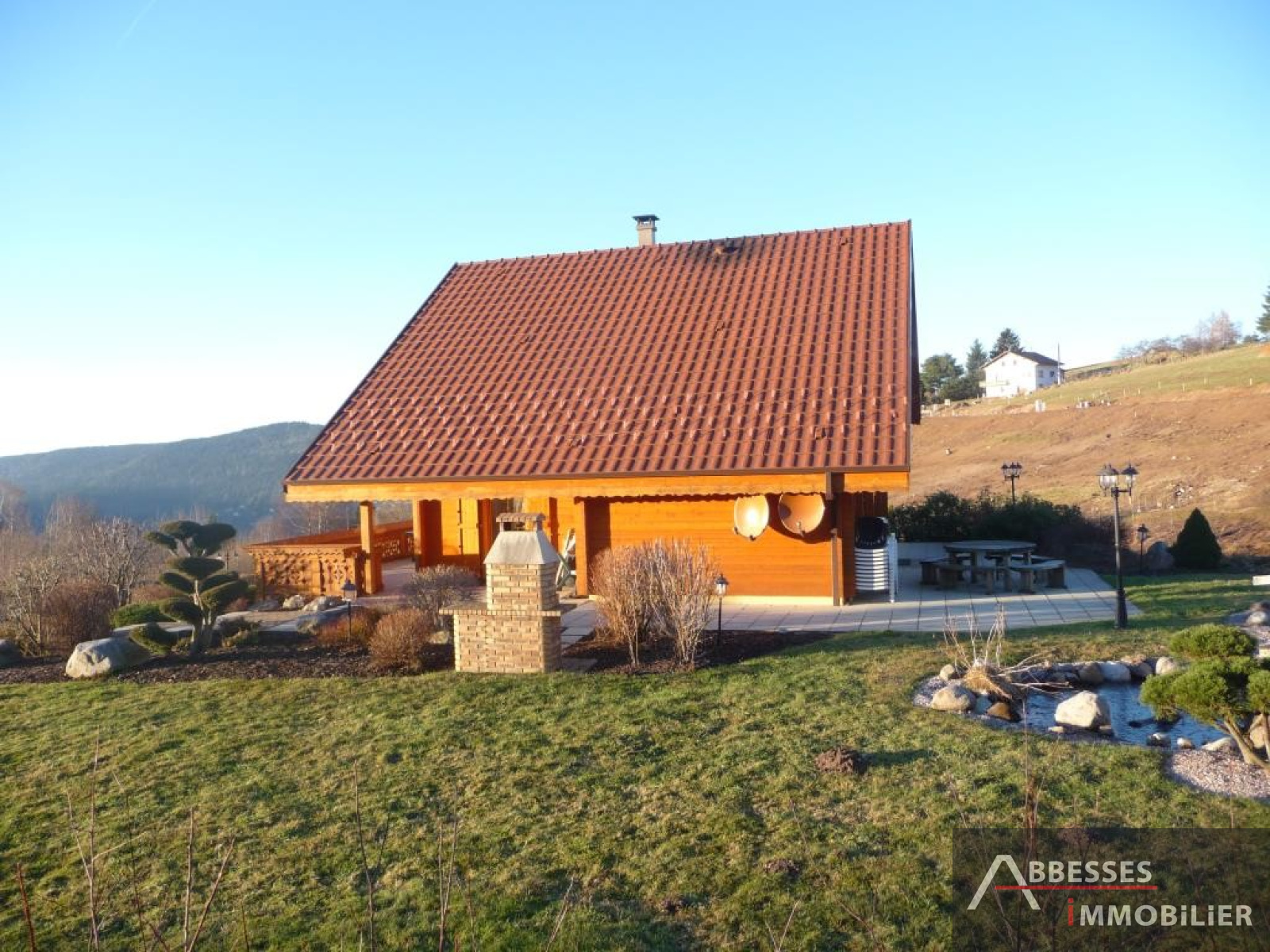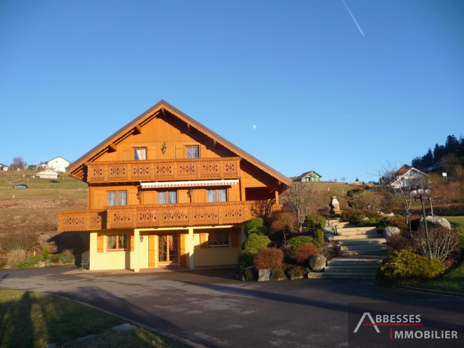 EN EXCLUSIVITE - GERARDMER : SUPERBE CHALET situé aux pieds des pistes, vue lac, ... 234 m² hab env. Cuisine intégrée, salon-séjour (poele faience) + terrasse, 4 chambres. Dressing. Mezzanine, balcon. 3 SDB, SAUNA. Salon détente. Garage. Terrain de pétanque. Terrain paysagé 3 000 m² env.