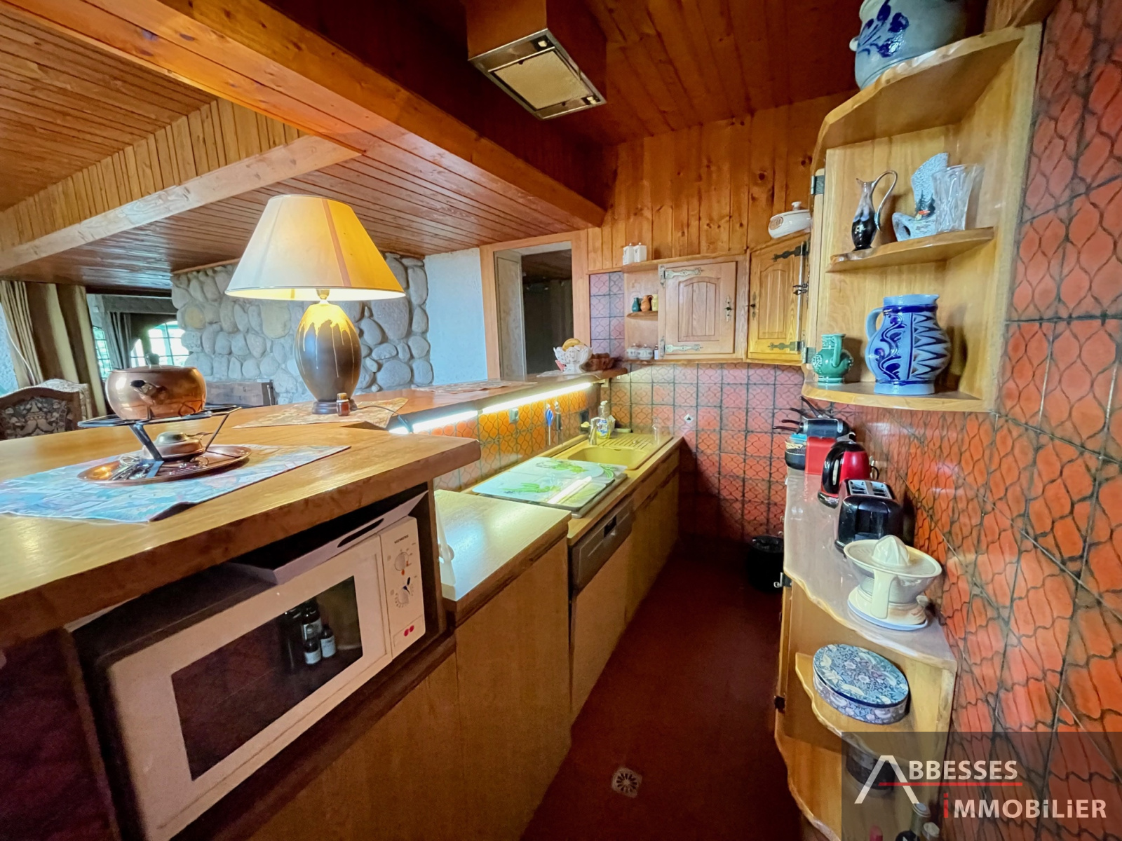 Composé : Entrée, cuisine équipée ouverte sur coin repas, cheminée en pierres, vaste salle à manger donnant accès aux vérandas et à la terrasse. 3 chambres, salle de bain avec baignoire + douche et WC. Le tout est à rafraichir .