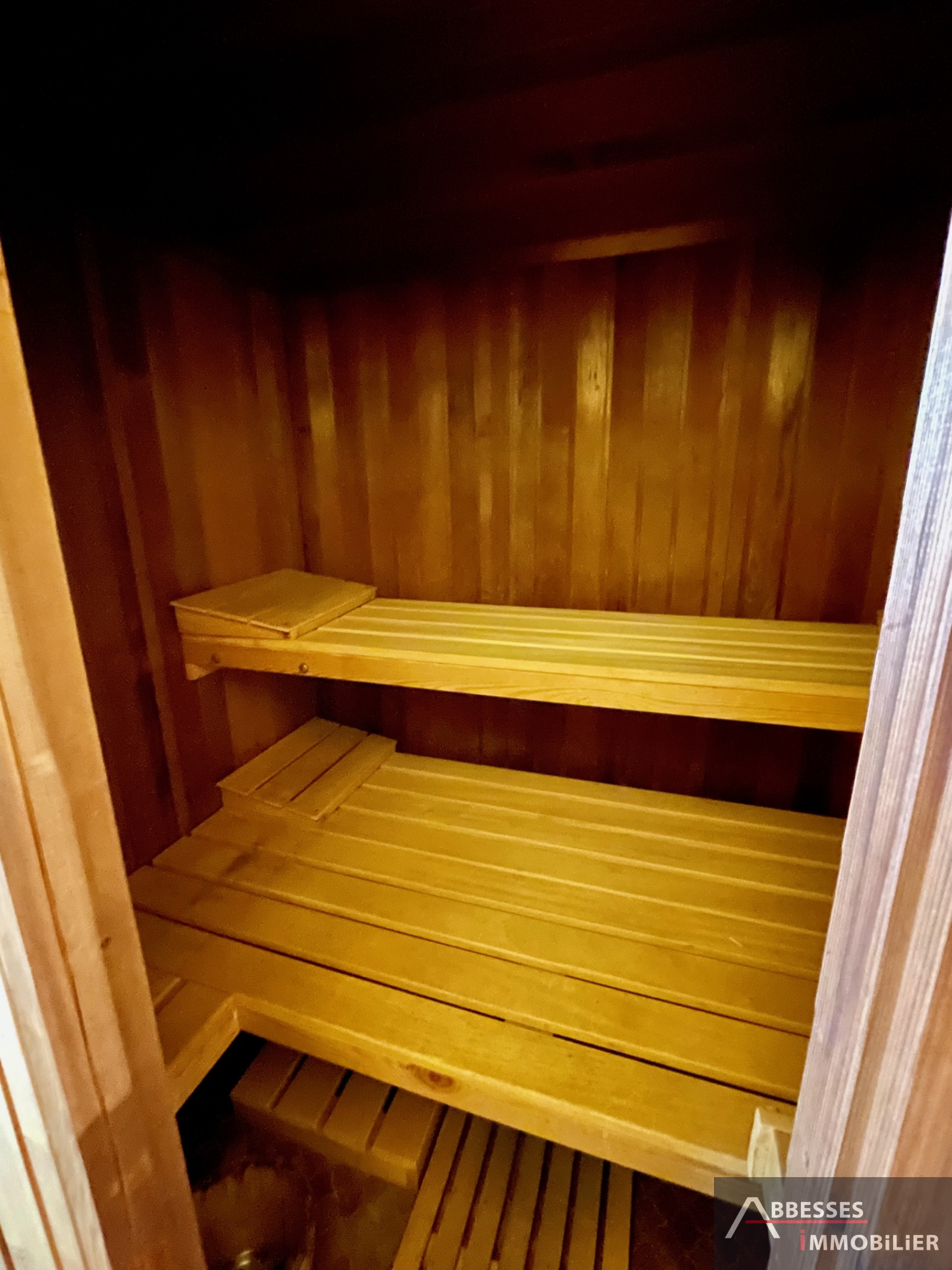 Vérandas avec baies entièrement coulissantes EXPOSE SUD, Salon d'été avec cuisine et accès PISCINE. Espace détente composé d'un jaccuzzi et un sauna . Salle de douche et wc.