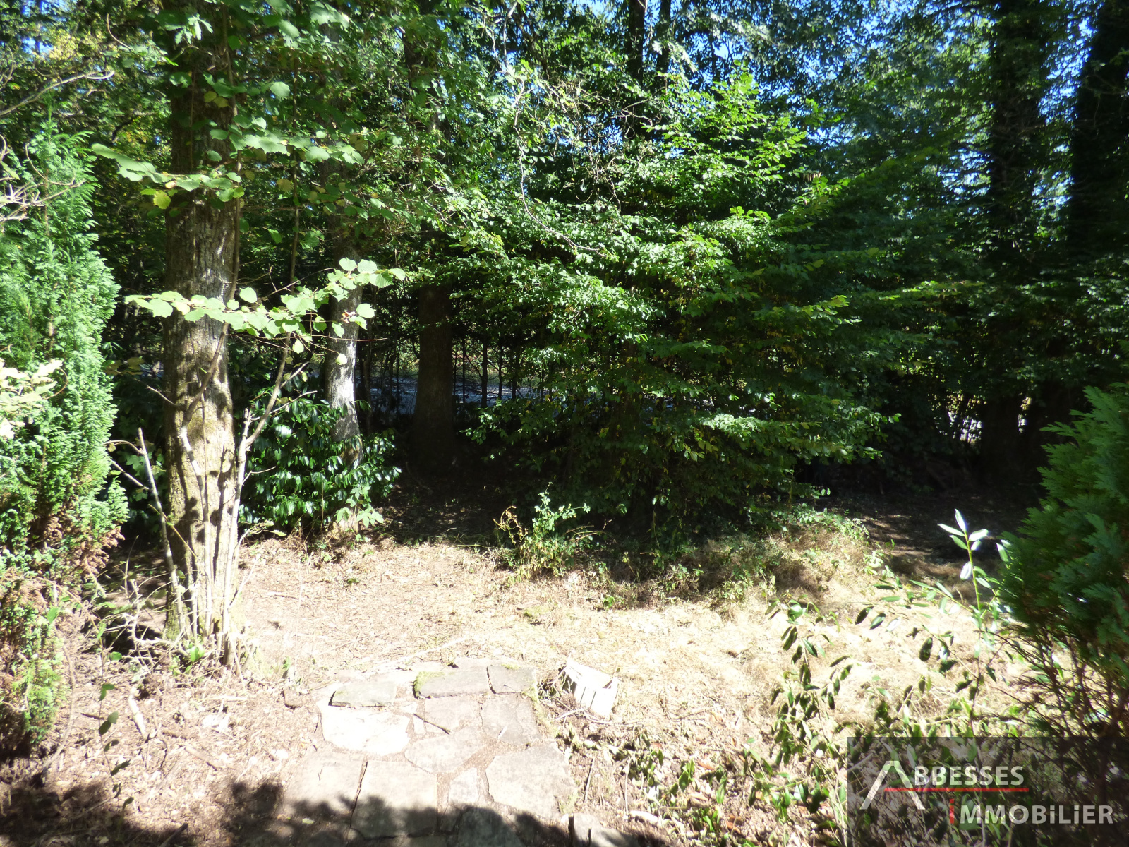 Terrain d'environ 1366 m² clos et arboré avec piscine (non utilisable en l'état). Cour pavée.