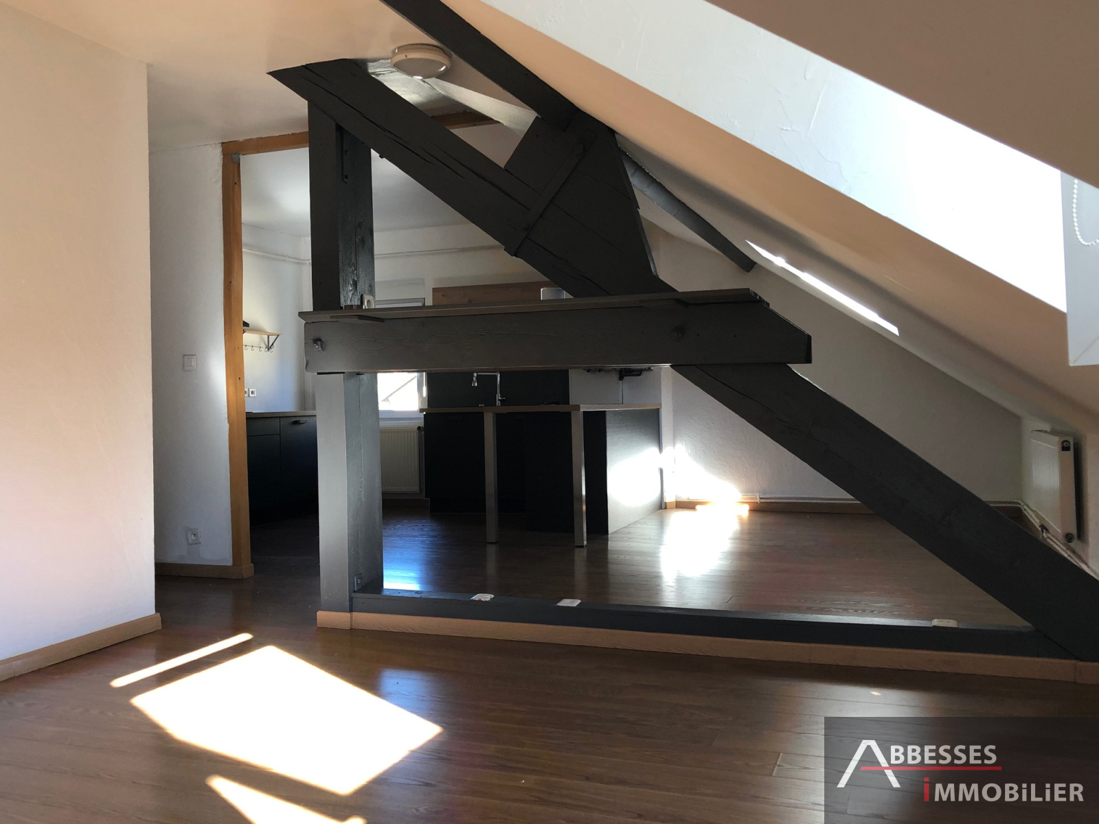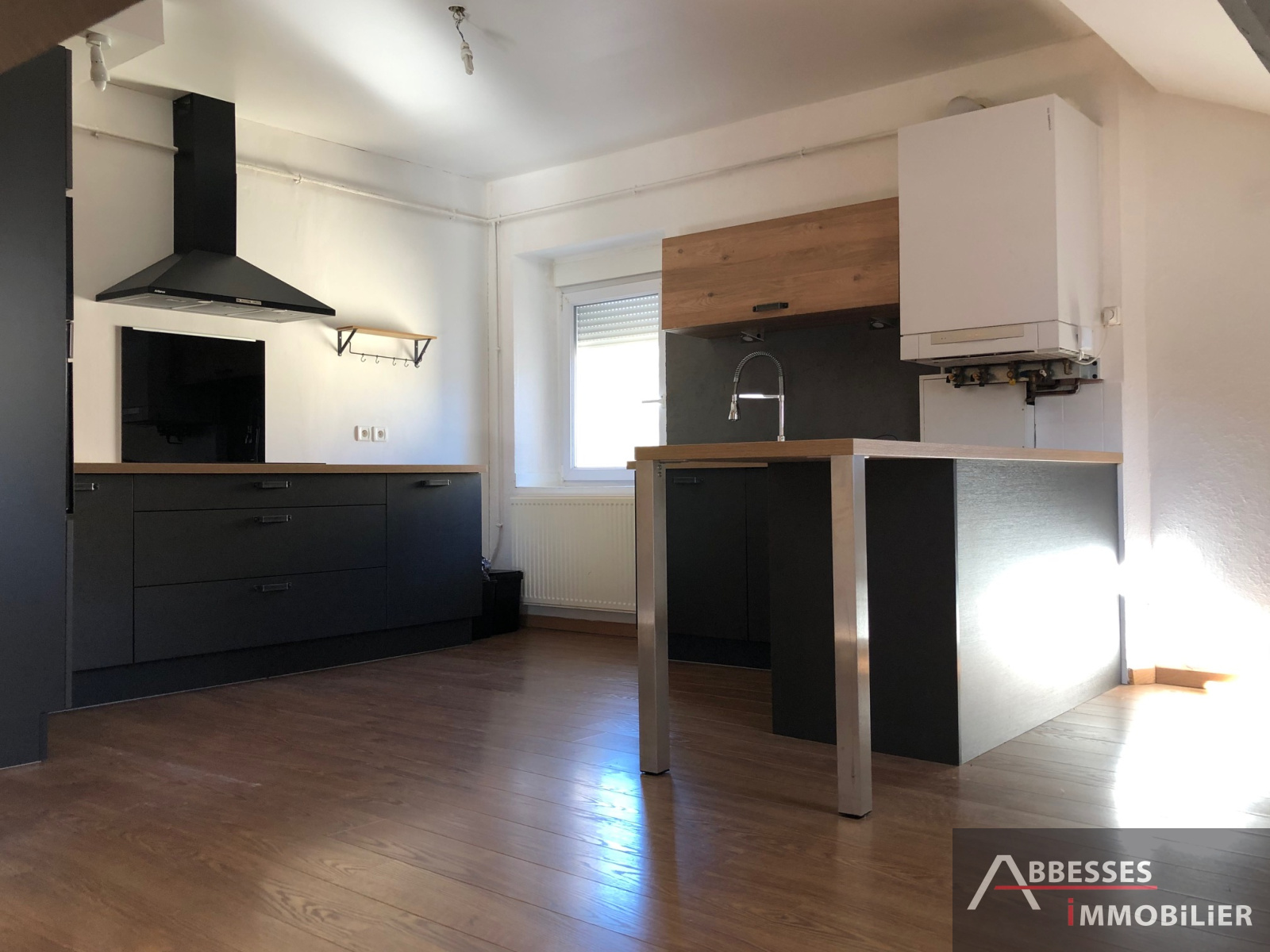 EN EXCLUSIVITE , RUPT SUR MOSELLE : Appartement de type F3 situé au 2ème et dernier étage comprenant : Entrée avec rangements, cuisine équipée ouverte sur le salon, 2 chambres, salle de bain (douche et baignoire), WC indépendant. CC gaz de ville. Jardin privatif au rez de chaussée. Garage et Parking. Superficie du logement : env 77.32 m² carrez