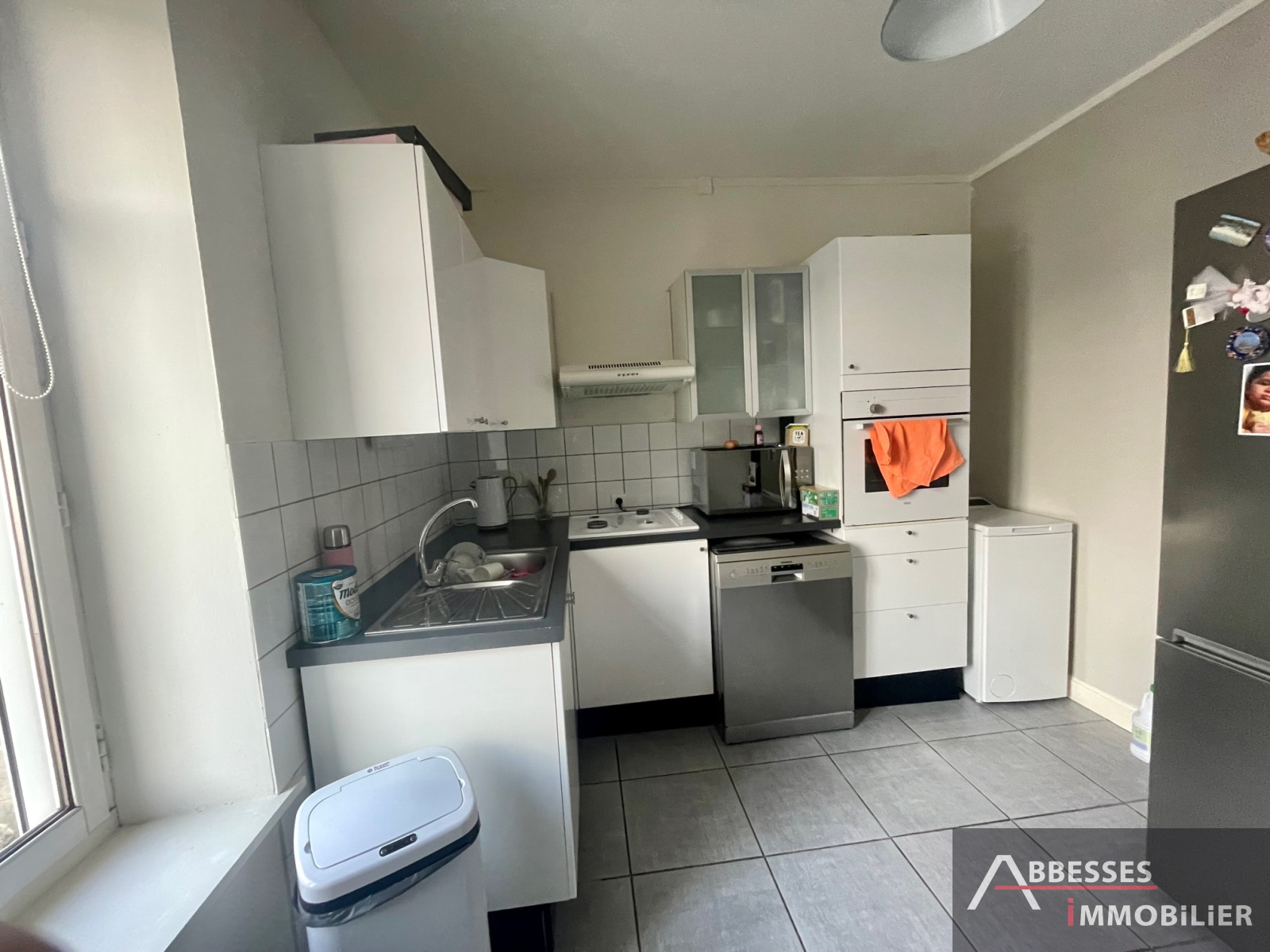Au 1er étage : appartement F3. Ch individuel gaz de ville. Surface env 86 m². Loué.
