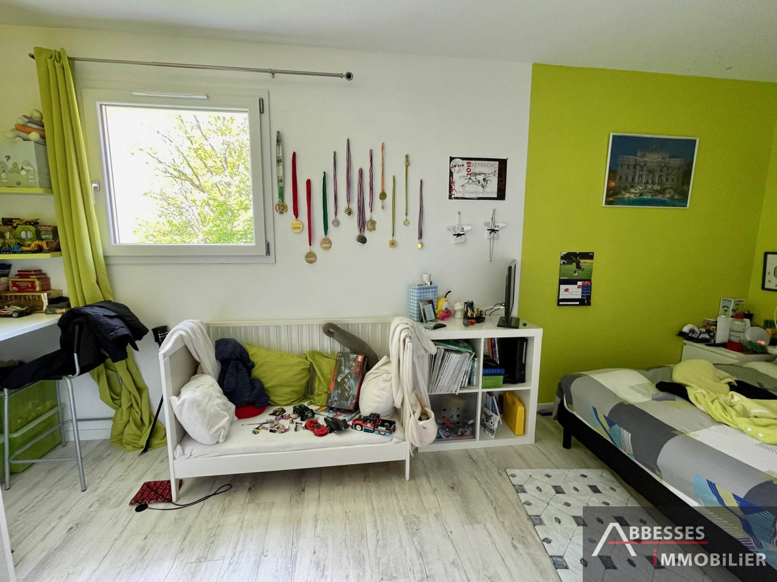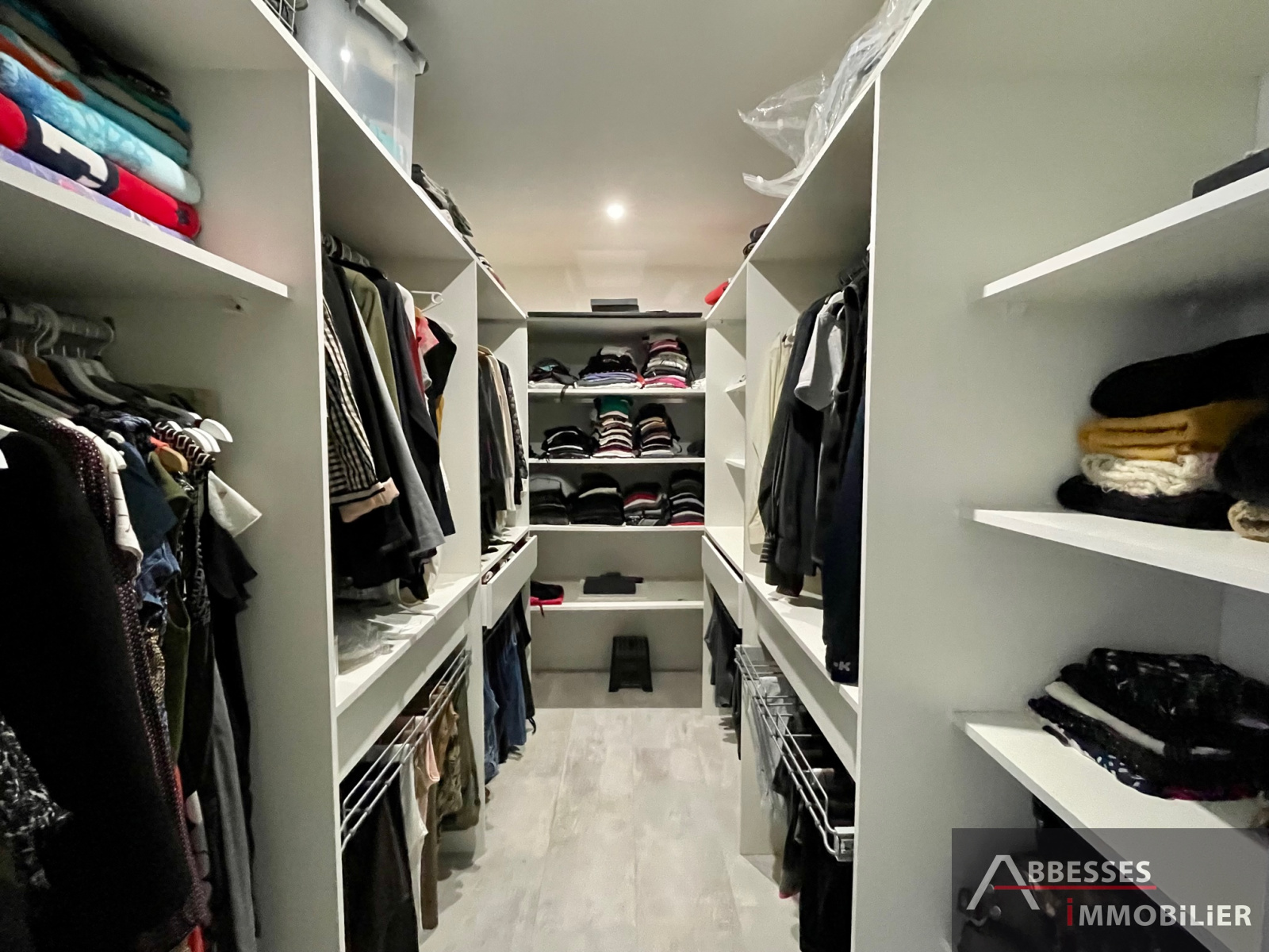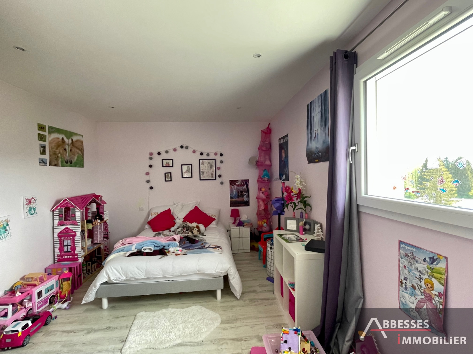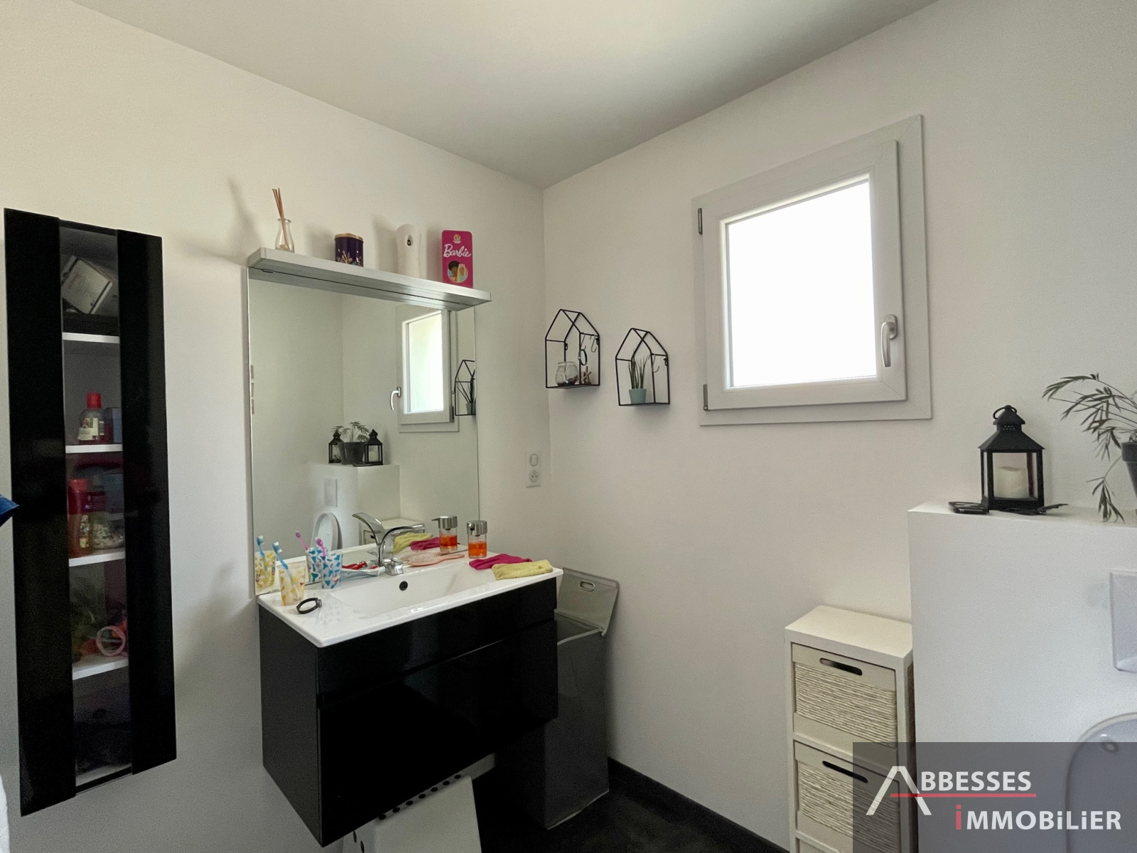 Au rez de chaussée surélevé : entrée avec placard, cuisine équipée avec table bar en granit et donnant accès sur le salon-séjour d'une superficie d'environ 54 m² avec accès extérieur sans vis à vis. Suite parentale d'env 11 m² avec dressing, salle de bains (douche italienne et baignoire). Bureau/chambre (9 m2). Wc indépendant. Buanderie.