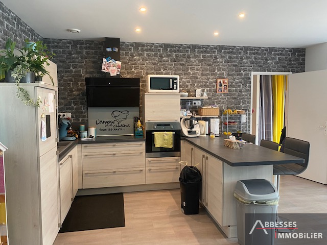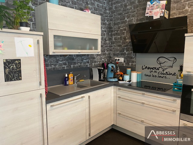 SAINT-ETIENNE-LES-REMIREMONT - Maison mitoyenne rénovée avec goût (par un côté) d'une surface de 105 m². Entrée / dégagement avec placards, cuisine moderne équipée ouverte sur salon-séjour accès extérieur (terrasse). Buanderie. Wc.