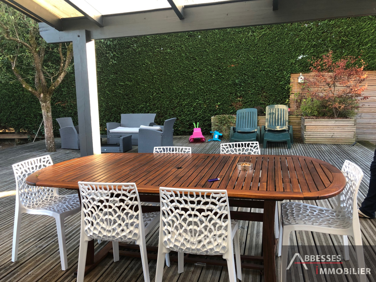 Terrain attenant d'une superficie totale d'env 558 m² ; terrasse bois d'env 110 m². Garage 1 véhicule et stationnement.