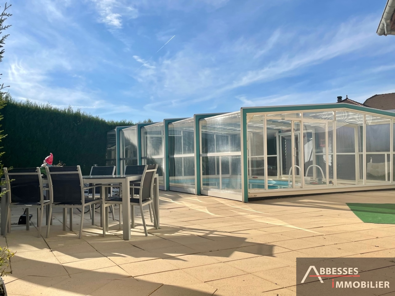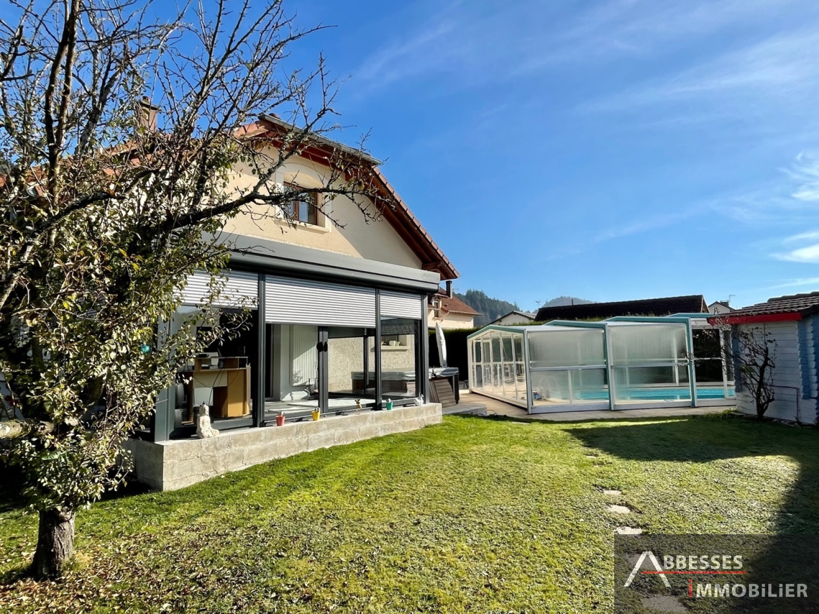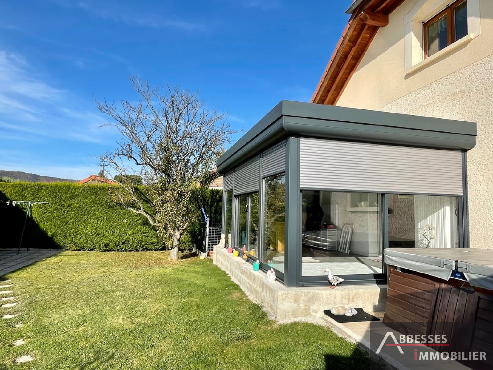 Terrain attenant clos d'environ 927 m² avec portail électrique. Piscine couverte. Jacuzzi. Abri de jardin.