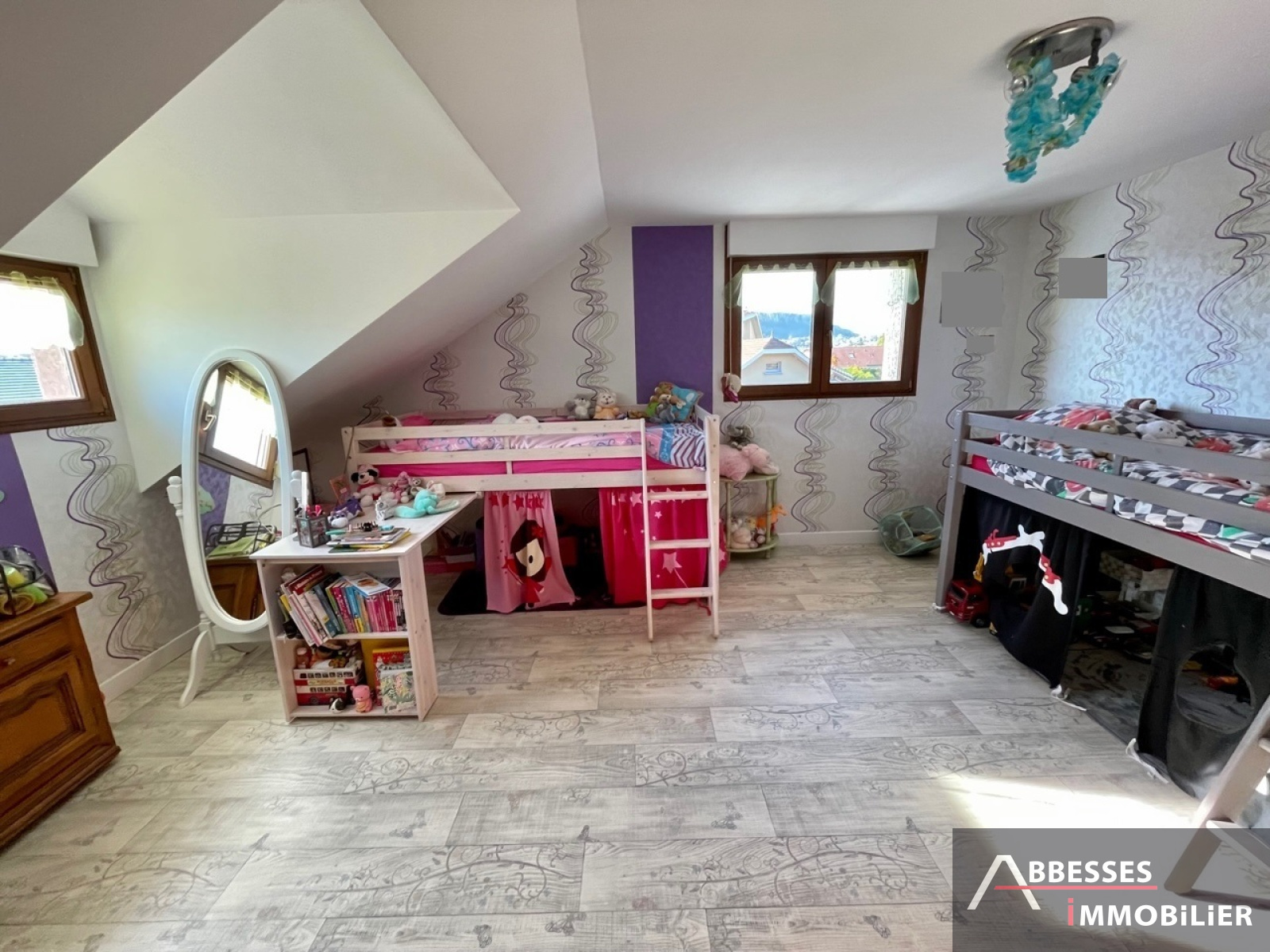 Étage et étage supérieur : 3 chambres. Salle de douche avec wc. Grenier.