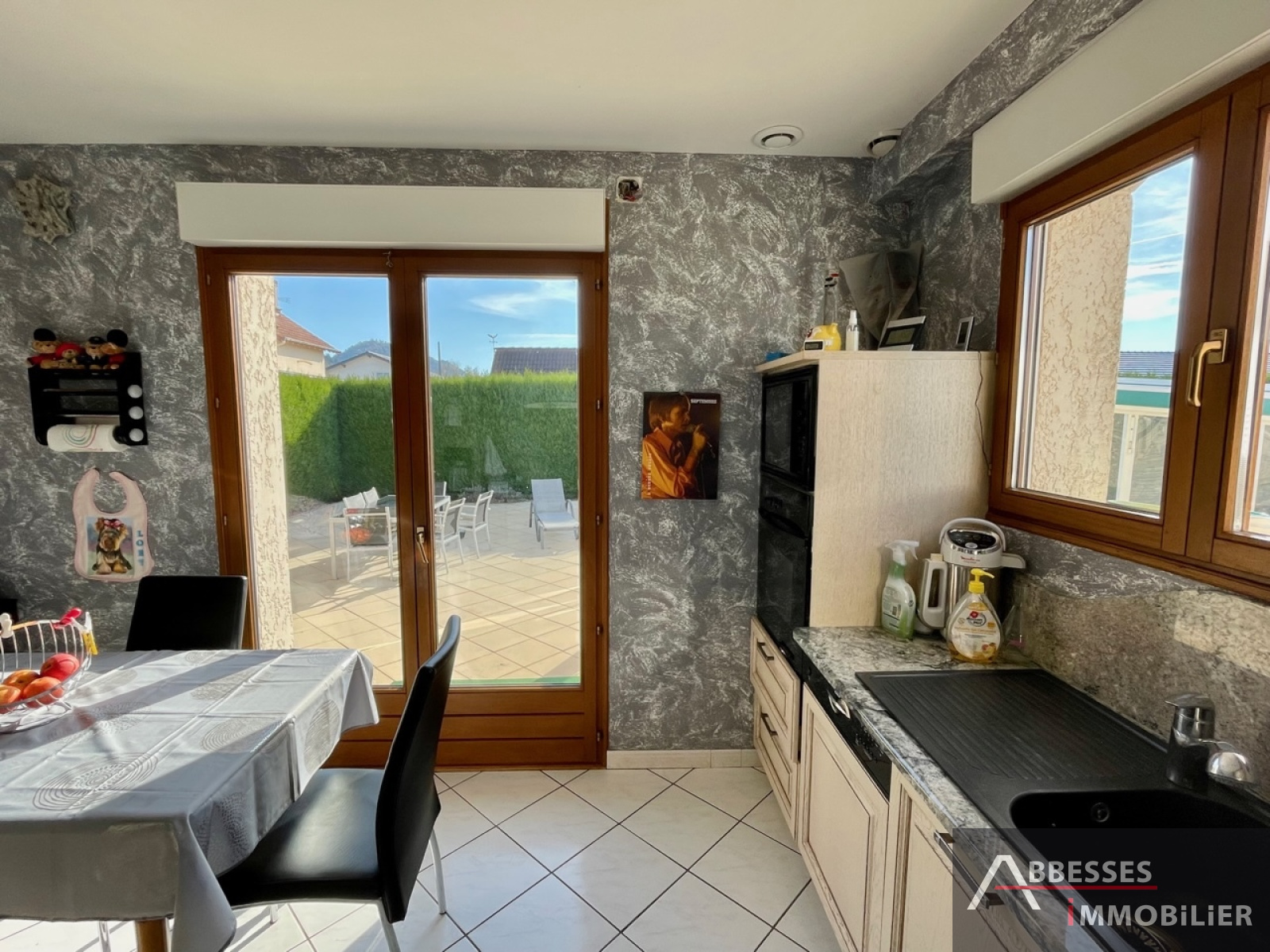 Saint Etienne Les Remiremont : Maison individuelle en demi-niveaux comprenant : entrée (placard), cuisine équipée accès terrasse dallée, salon-séjour, véranda neuve accès extérieur.