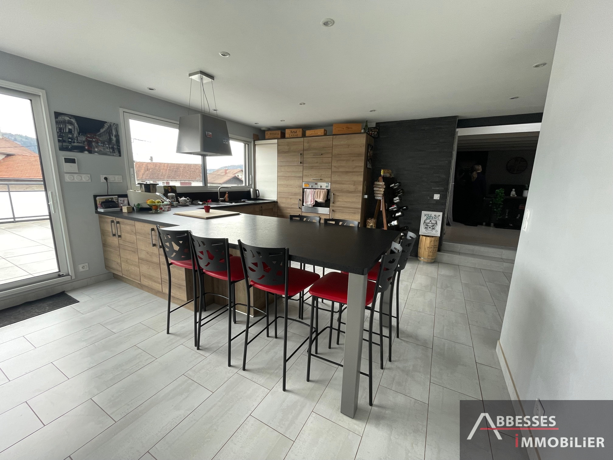 EN EXCLUSIVITÉ : SAINT ETIENNE LES REMIREMONT : Exposée SUD - Habitation familiale atypique et moderne de type F8 (extension bois Socopa de 2017 accolée à un appartement d'origine)